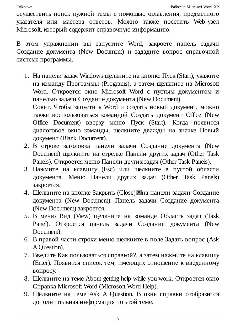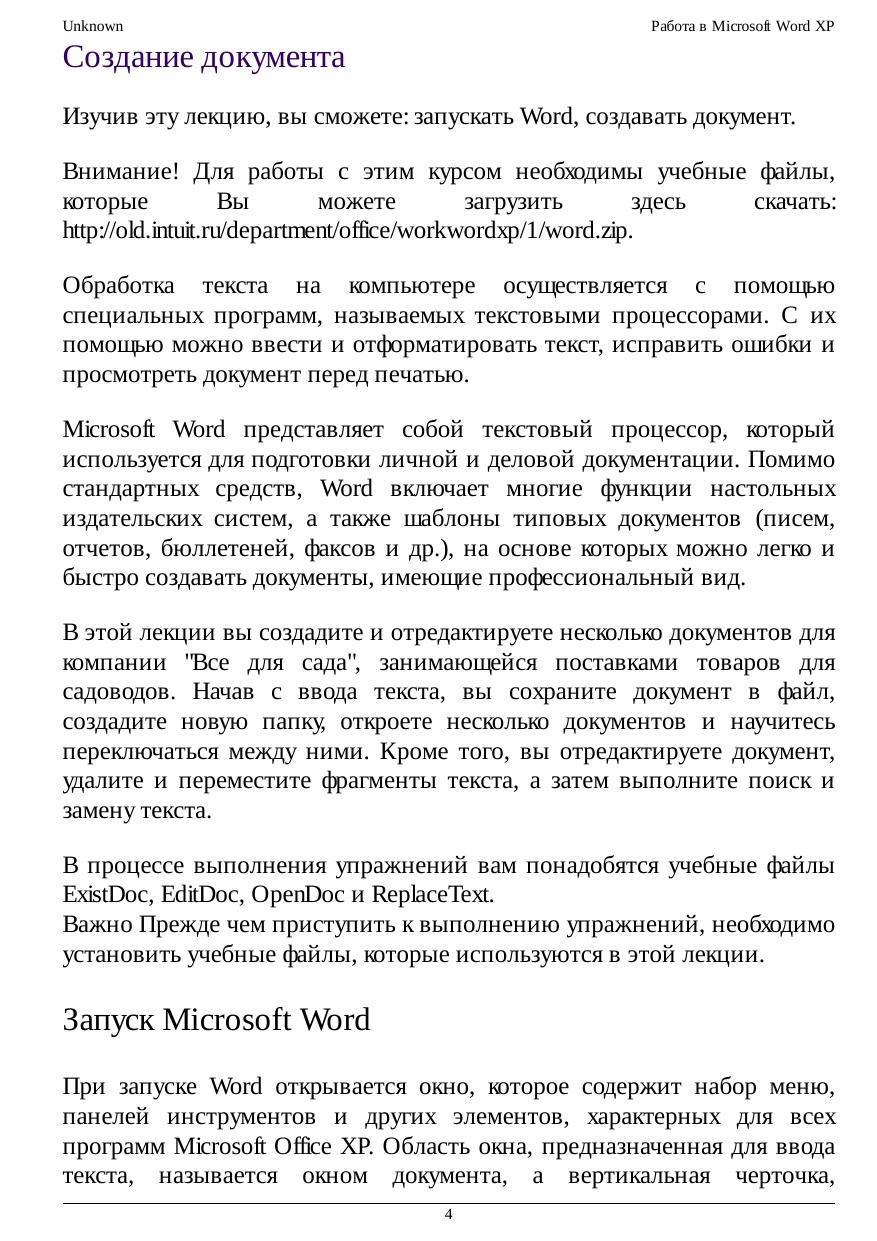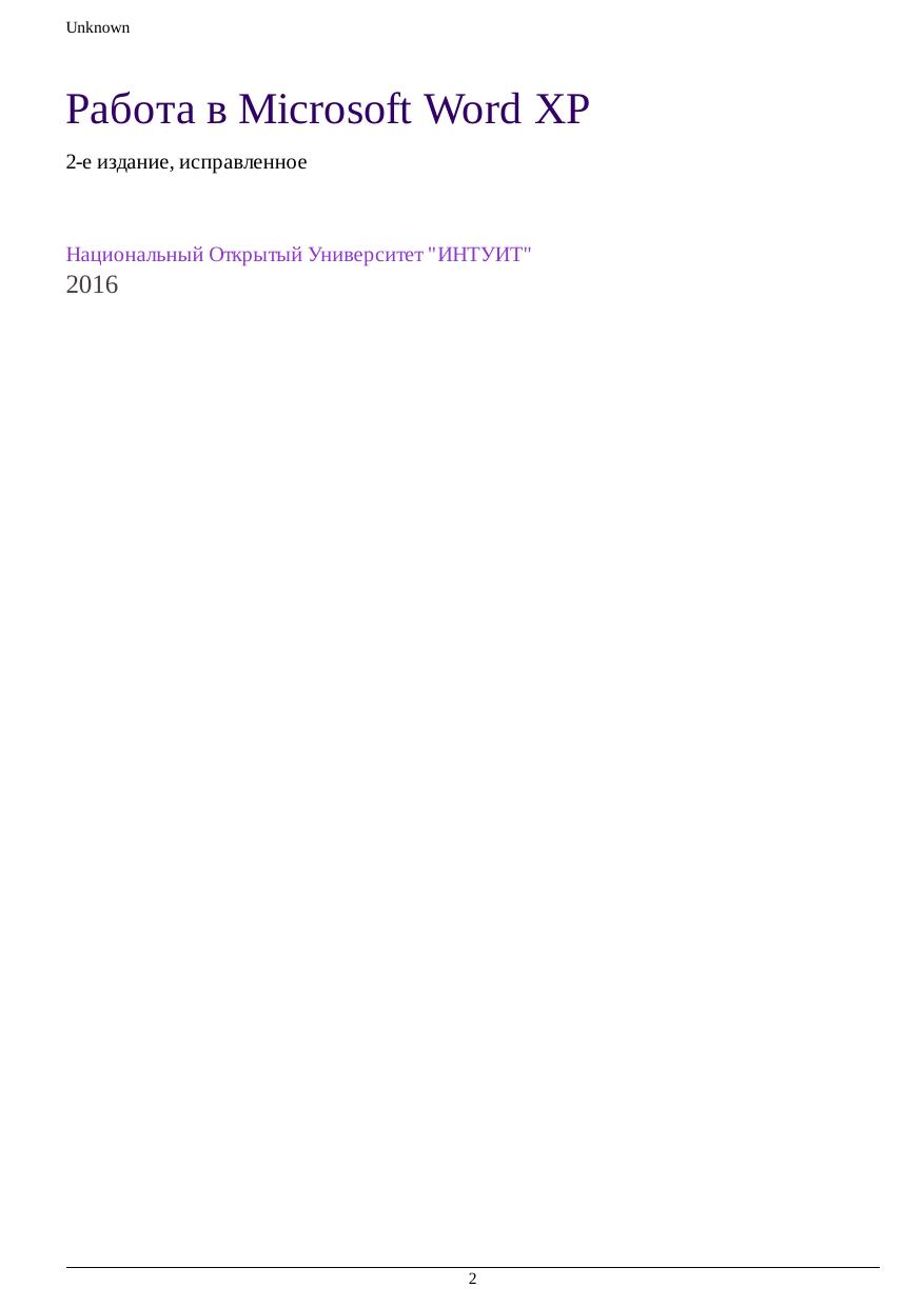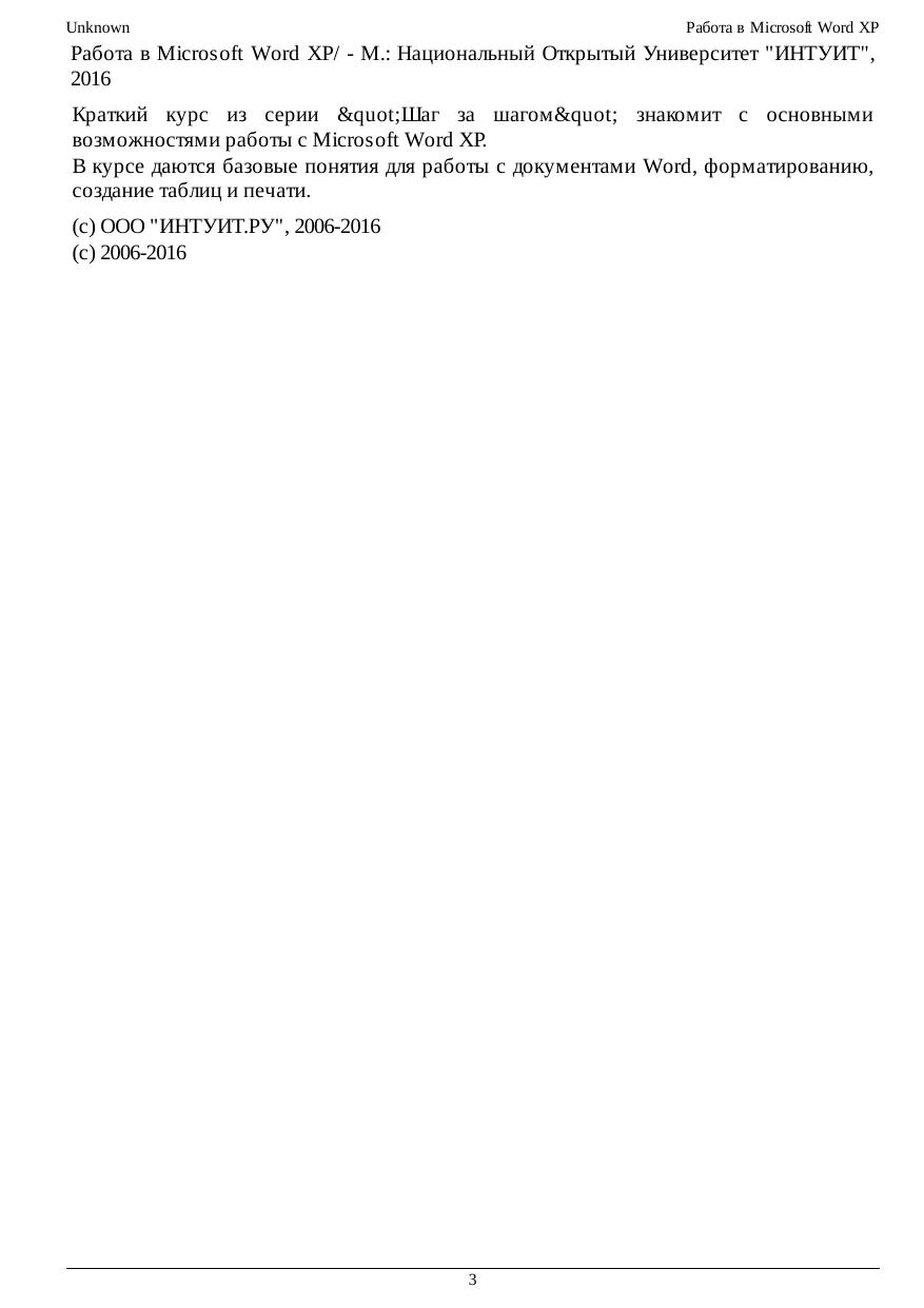 Краткий курс из серии "Шаг за шагом" знакомит с основными возможностями работы с Microsoft Word XP. В курсе даются базовые понятия для работы с документами Word, форматированию, создание таблиц и печати.