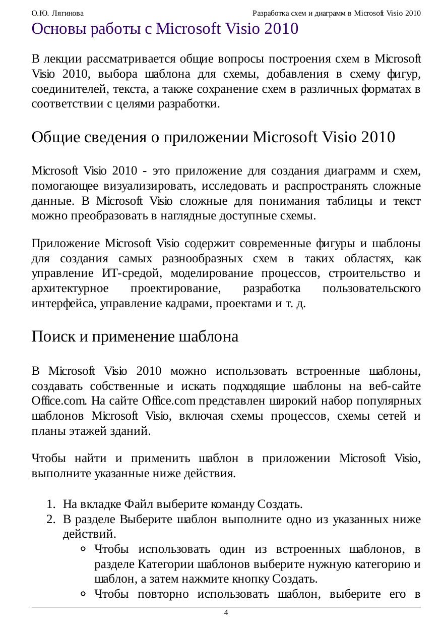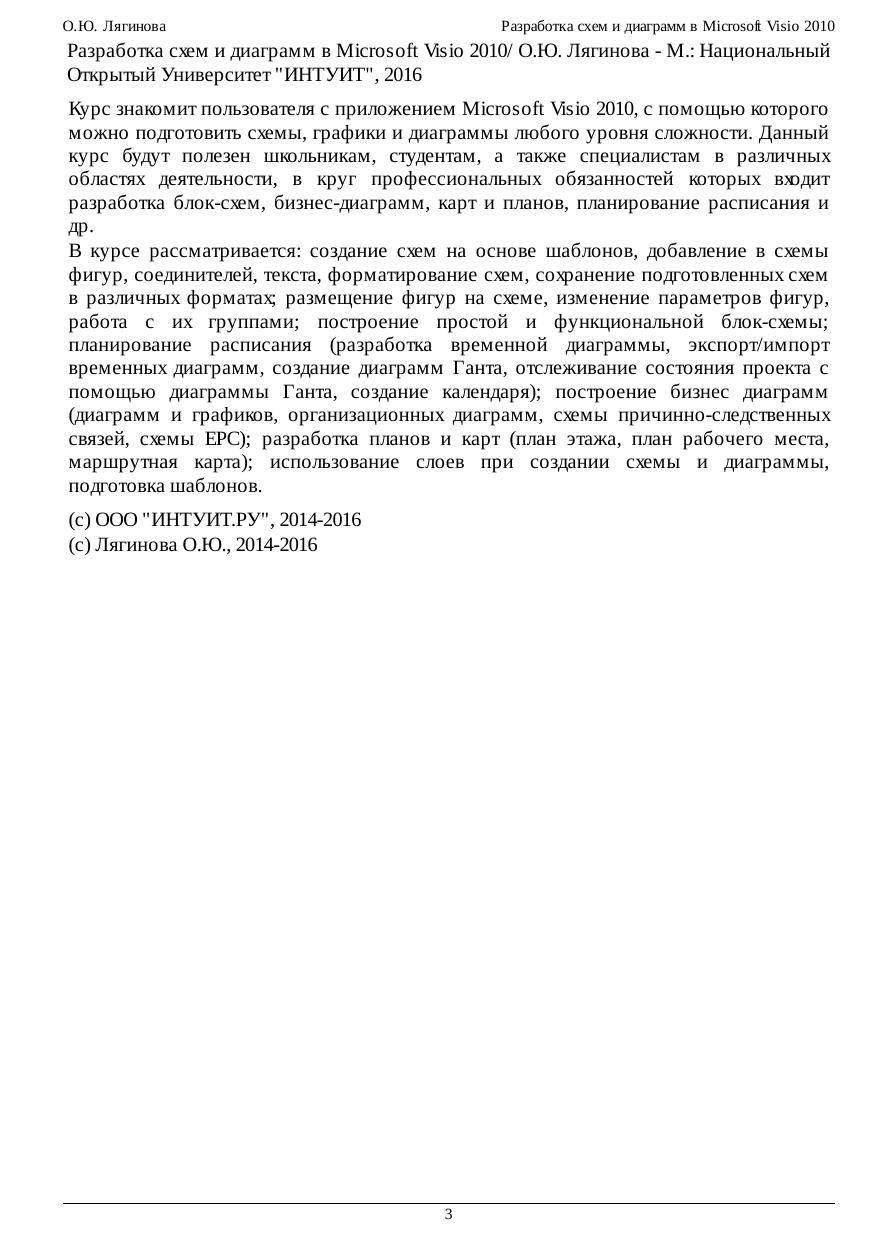 областях деятельности, в круг профессиональных обязанностей которых входит разработка блок-схем, бизнес-диаграмм, карт и планов, планирование расписания и др. В курсе рассматривается: создание схем на основе шаблонов, добавление в схемы