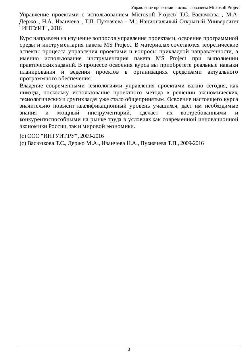 Курс направлен на изучение вопросов управления проектами, освоение программной среды и инструментария пакета MS Project. В материалах сочетаются теоретические аспекты процесса управления проектами и вопросы прикладной направленности, а именно использование инструментария пакета MS Project при выполнении практических заданий. В процессе освоения курса вы приобретете реальные навыки планирования и ведения проектов в организациях средствами актуального программного обеспечения. Владение современными технологиями управления проектами важно сегодня, как никогда, поскольку использование проектного метода в решении экономических, технологических и других задач уже стало общепринятым. Освоение настоящего курса значительно повысит квалификационный уровень учащихся, даст им необходимые знания и мощный инструментарий, сделает их востребованными и конкурентоспособными на рынке труда в условиях как современной инновационной экономики России, так и мировой экономики.