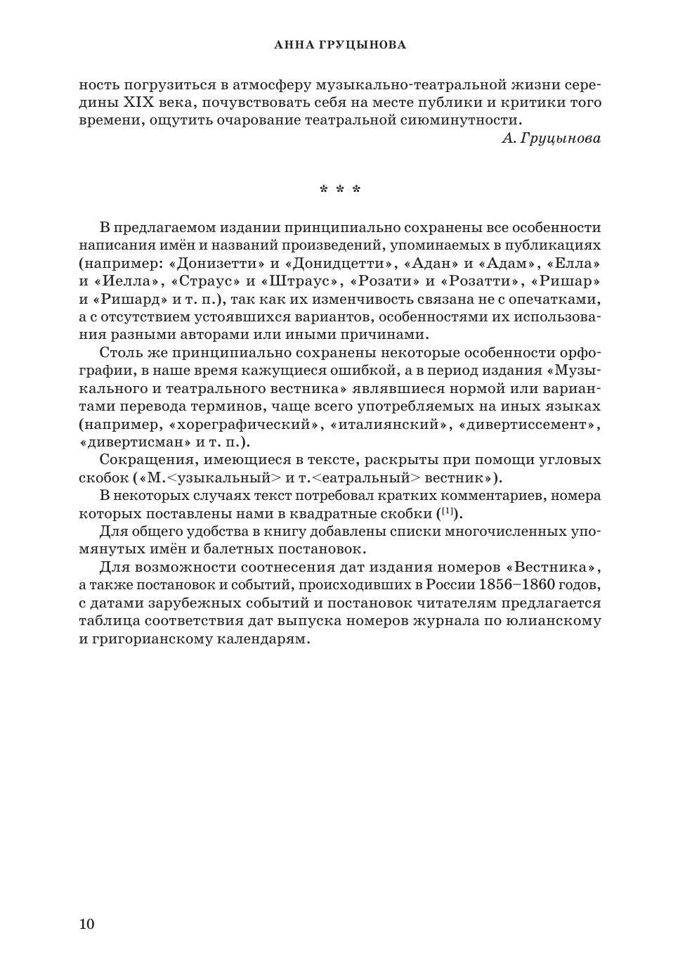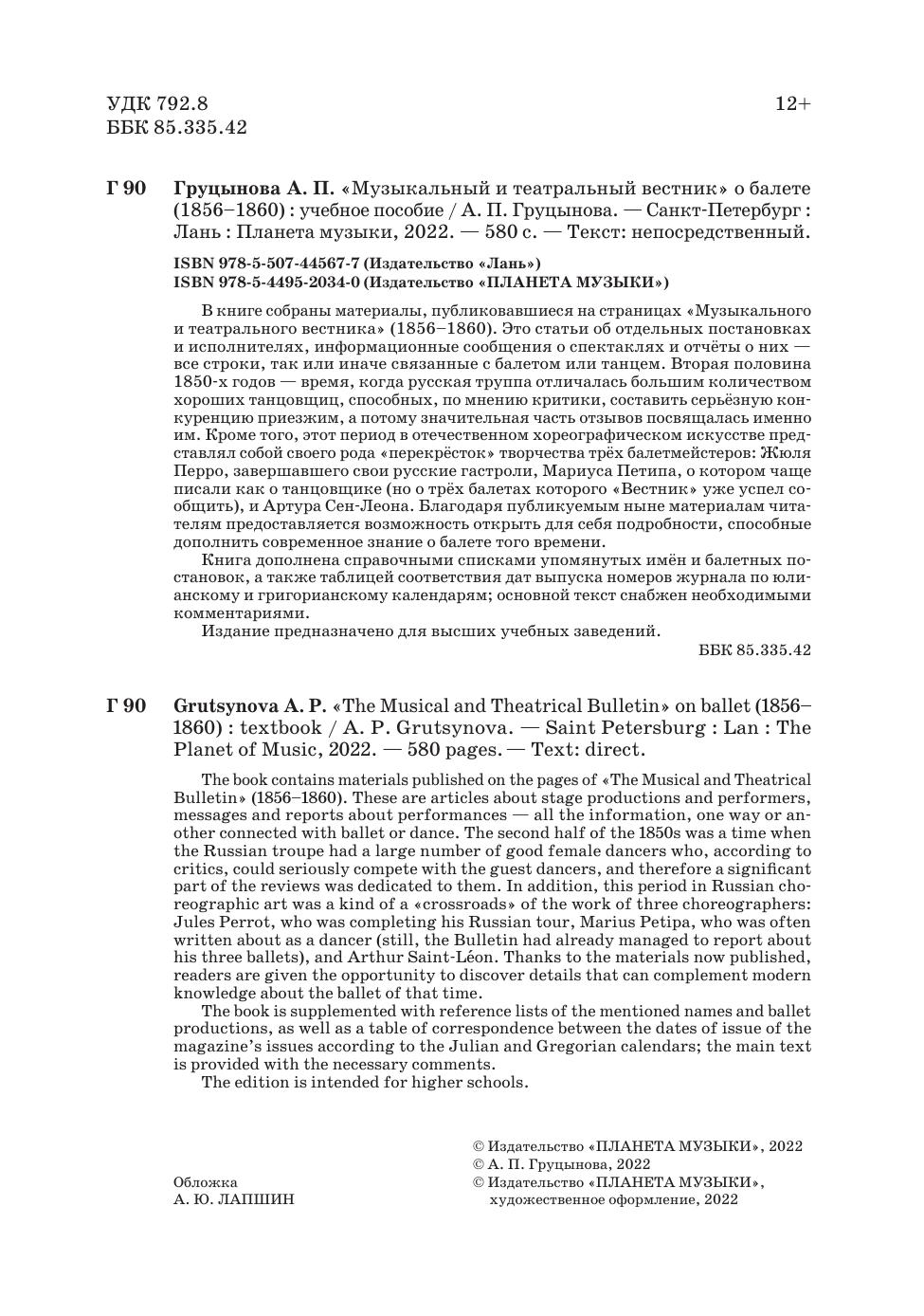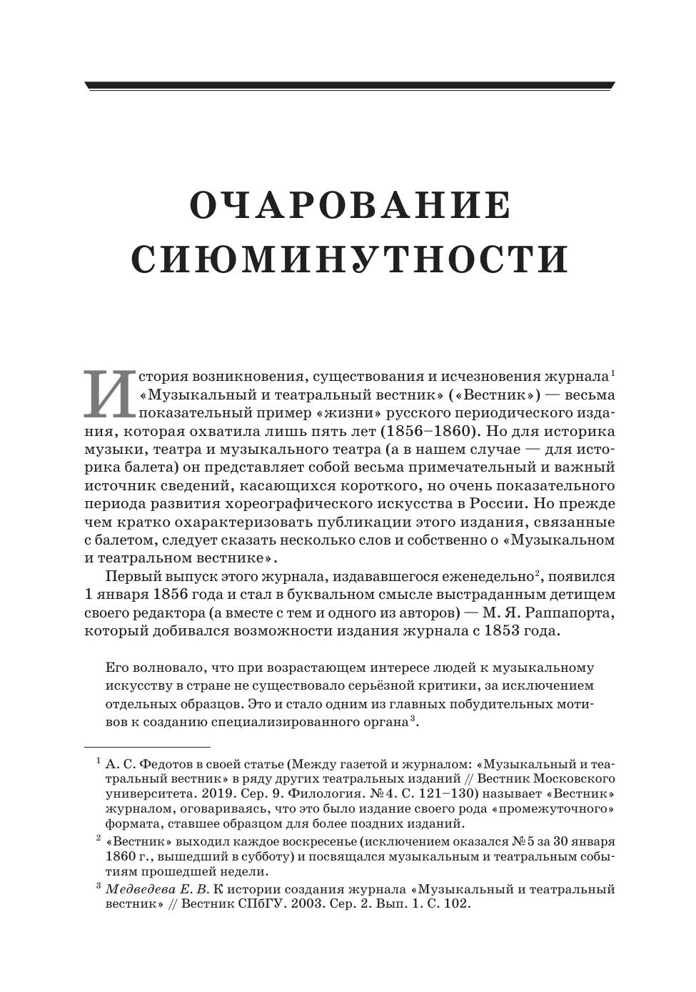 The book is supplemented with reference lists of the mentioned names and ballet productions, as well as a table of correspondence between the dates of issue of the magazine’s issues according to the Julian and Gregorian calendars; the main text is provided with the necessary comments. The edition is intended for higher schools.