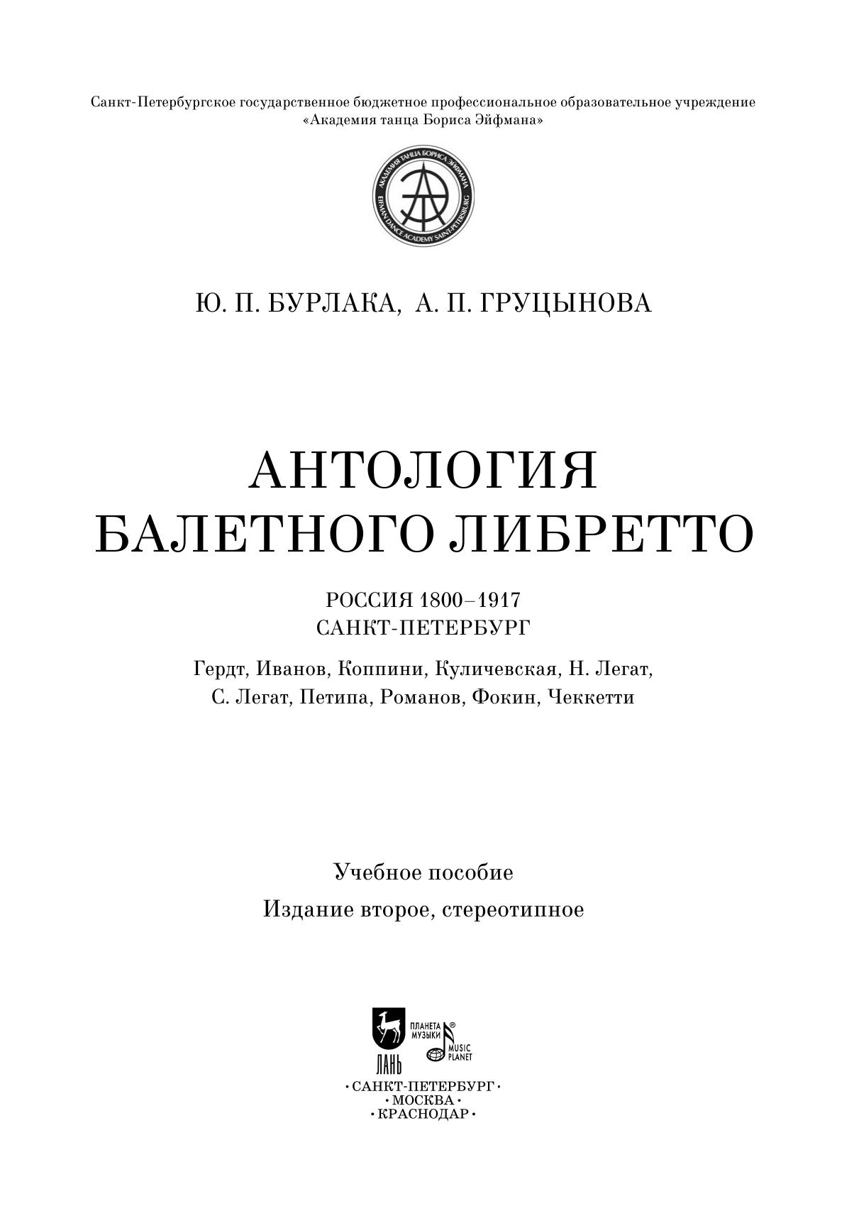Антология балетного либретто. Россия 1800-1917. Санкт-Петербург. Гердт, Иванов, Коппини, Куличевская, Н. Легат, С. Легат, Петипа, Романов, Фокин, Чеккетти