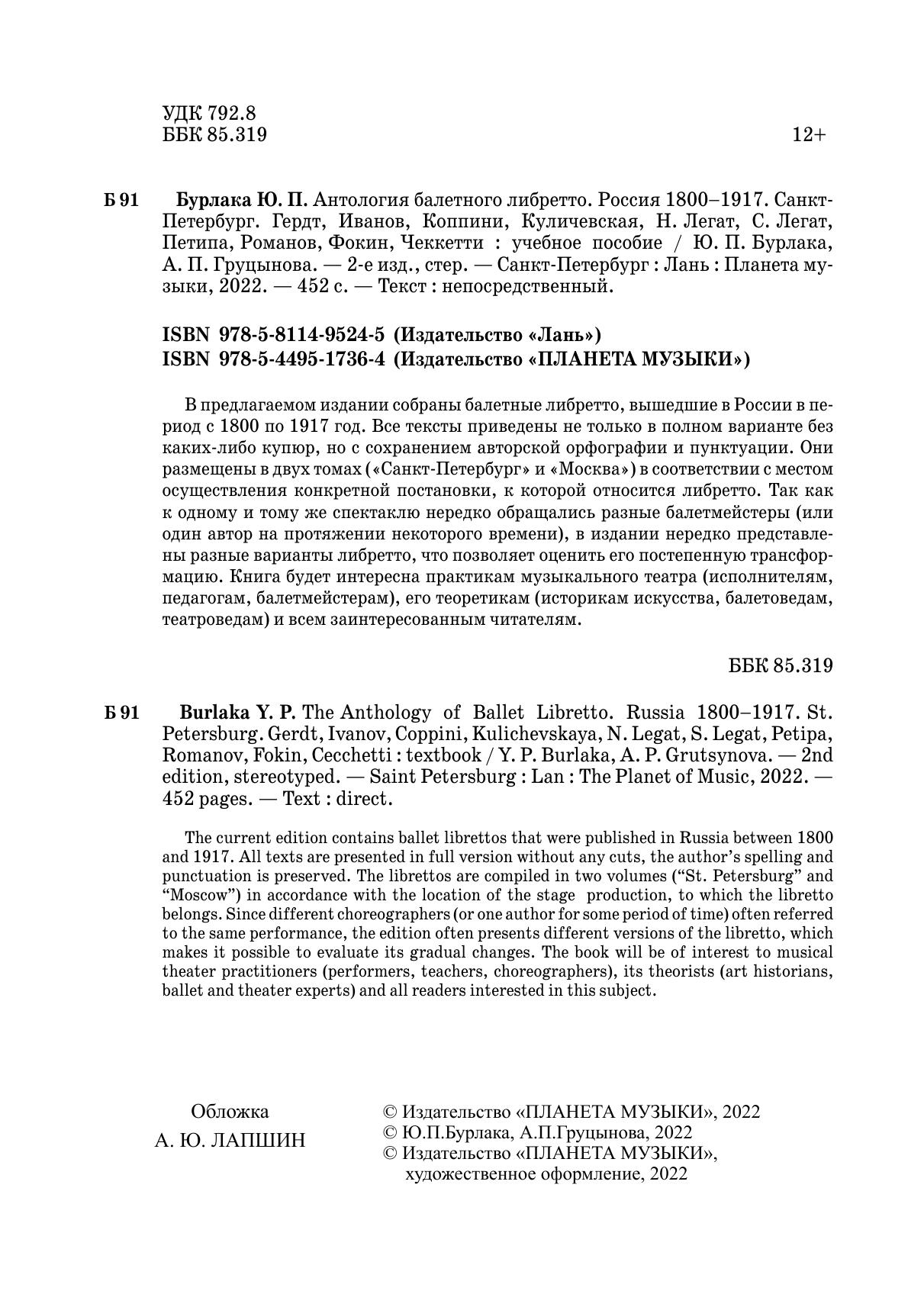 В предлагаемом издании собраны балетные либретто, вышедшие в России в период с 1800 по 1917 год. Все тексты, размещённые в нём, приведены не только в полном варианте без каких-либо купюр, но с сохранением авторской орфографии и пунктуации. Они размещены в двух томах («Санкт-Петербург» и «Москва») в соответствии с местом осуществления конкретной постановки, к которой относится либретто. Так как к одному и тому же спектаклю нередко обращались разные балетмейстеры (или один автор на протяжении некоторого времени), в издании нередко представлены разные варианты либретто, что позволяет оценить его постепенную трансформацию. Книга будет интересна практикам музыкального театра (исполнителям, педагогам, балетмейстерам), его теоретикам (историкам искусства, балетоведам, театроведам) и всем заинтересованным читателям.