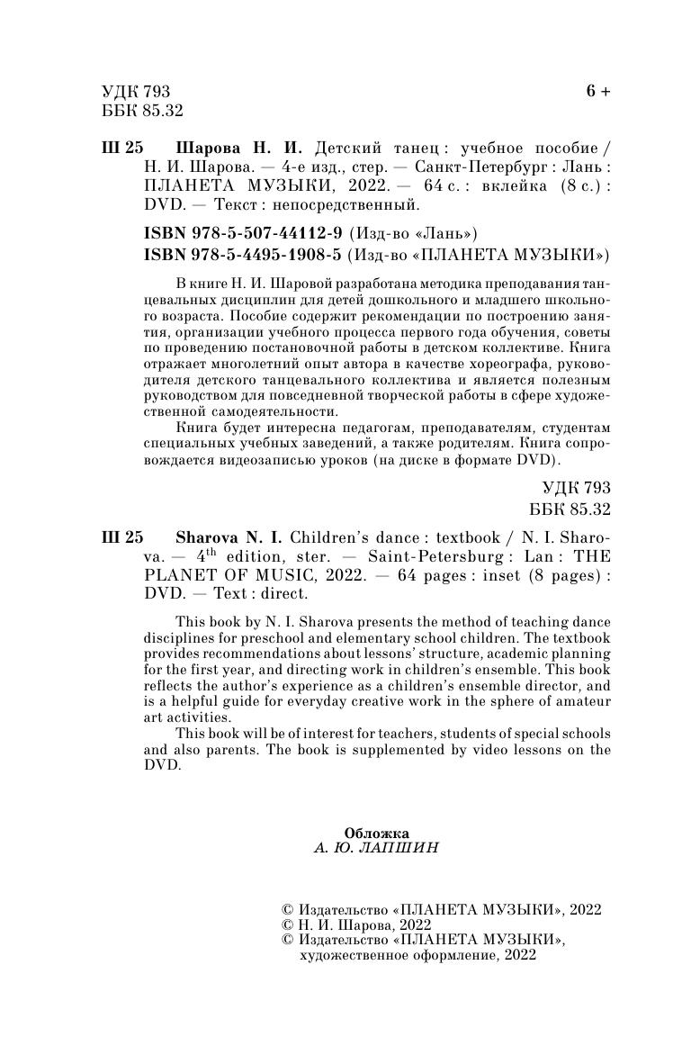 В книге Н. И. Шаровой разработана методика преподавания танцевальных дисциплин для детей дошкольного и младшего школьного возраста. Пособие содержит рекомендации по построению занятия, организации учебного процесса первого года обучения, советы по проведению постановочной работы в детском коллективе. Книга отражает многолетний опыт автора в качестве хореографа, руководителя детского танцевального коллектива и является полезным руководством для повседневной творческой работы в сфере художественной самодеятельности.