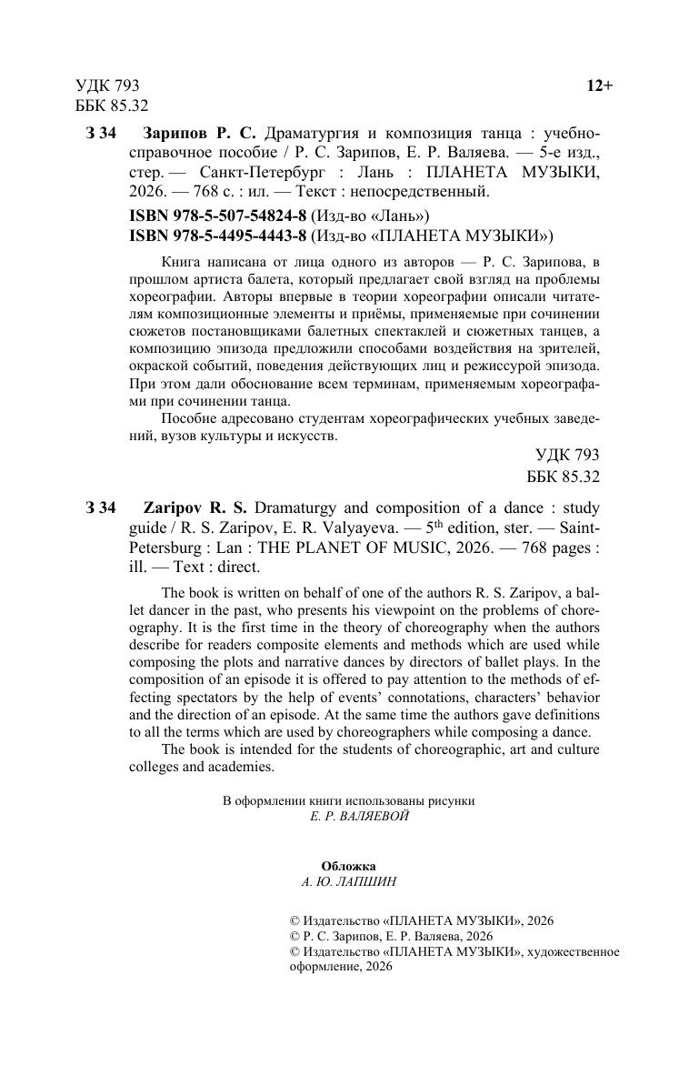 Книга написана от лица одного из авторов — Зарипова Р. С., в прошлом артиста балета, который предлагает свой взгляд на проблемы хореографии. Авторы впервые в теории хореографии описали читателям композиционные элементы и приёмы, применяемые при сочинении сюжетов постановщиками балетных спектаклей и сюжетных тан-цев, а в композиции эпизода предлагают обратить внимание на способы воздействия на зрителей, окраской событий, поведения действующих лиц и режиссурой эпизода. При этом дали обоснование всем терминам, применяемым хореографами при сочинении танца. Пособие адресовано студентам хореографических учебных заведений, вузов культуры и искусств.