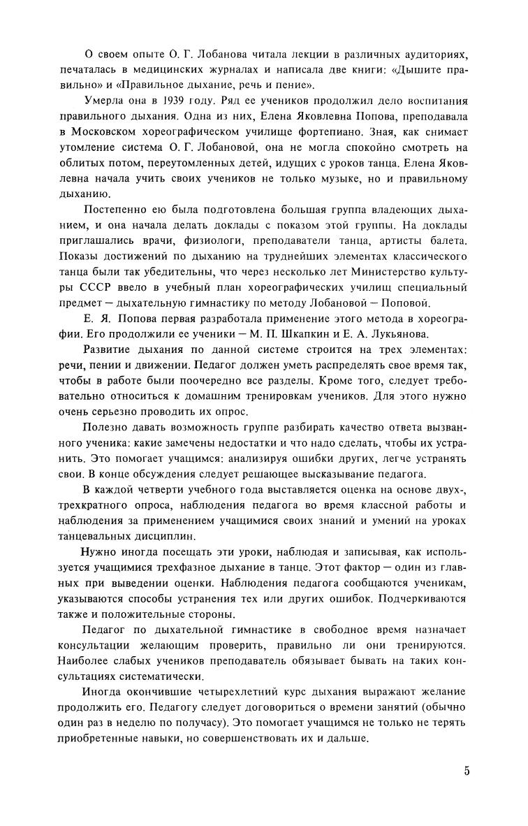 Книга представляет собой учебное пособие для средних учебных заведении искусства и культуры. Автор подробно излагает методику преподавания предмета, выработанную в процессе многолетней педагогической деятельности в Московском хореографическом училище. В учебном пособии раскрывается метод трехфазного дыхания. История его появления связана с людьми, болевшими астмой и туберкулезом, и нашедшими средство борьбы с болезнью в описанных дыхательных упражнениях. Впоследствии эта методика послужила основой владения дыханием для хореографов, вокалистов и актеров. Соответствует современным требованиям Федерального государственного образовательного стандарта среднего профессионального образования и профессиональным квалификационным требованиям. This is a textbook for colleges of art and culture. The author gives a thorough description of the methods of teaching a three-phase breathing, developed throughout his work in The Moscow State Academy of Choreography. The history of three-phase breathing connected with people with asthma and tuberculosis, they found that breathing exercises very helpful. Later on this method became basics for choreographers, vocalists and actors breathing work. Corresponds to the modern requirements of the Federal State Educational Standard of Secondary Vocational Education and professional qualification requirements.