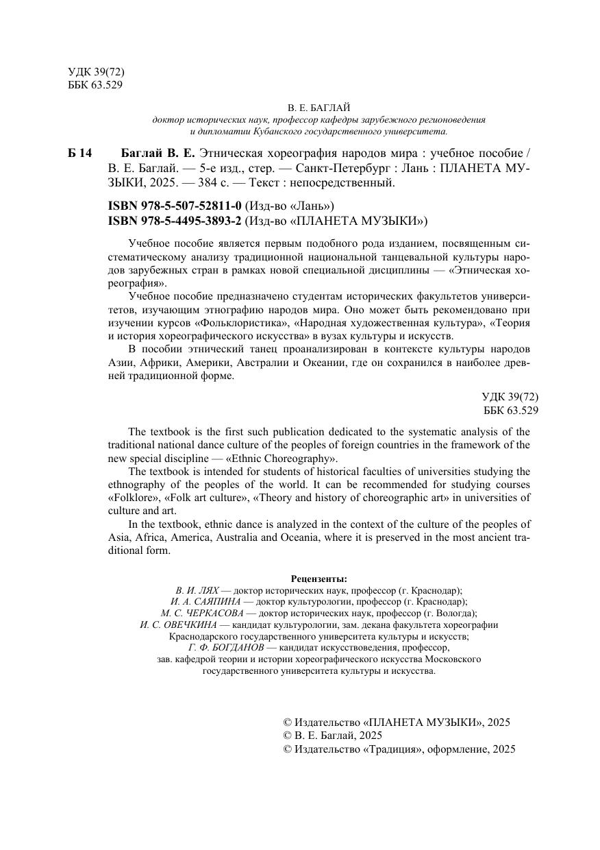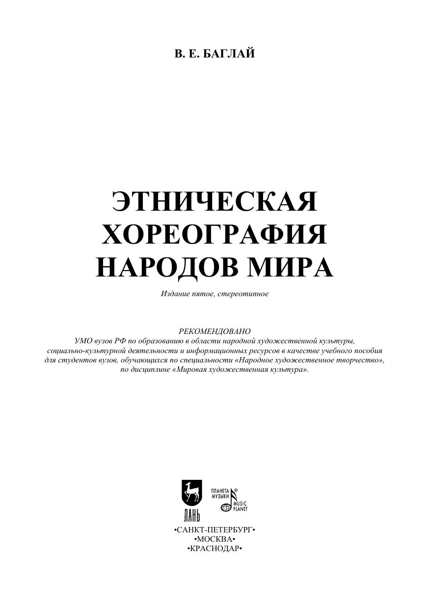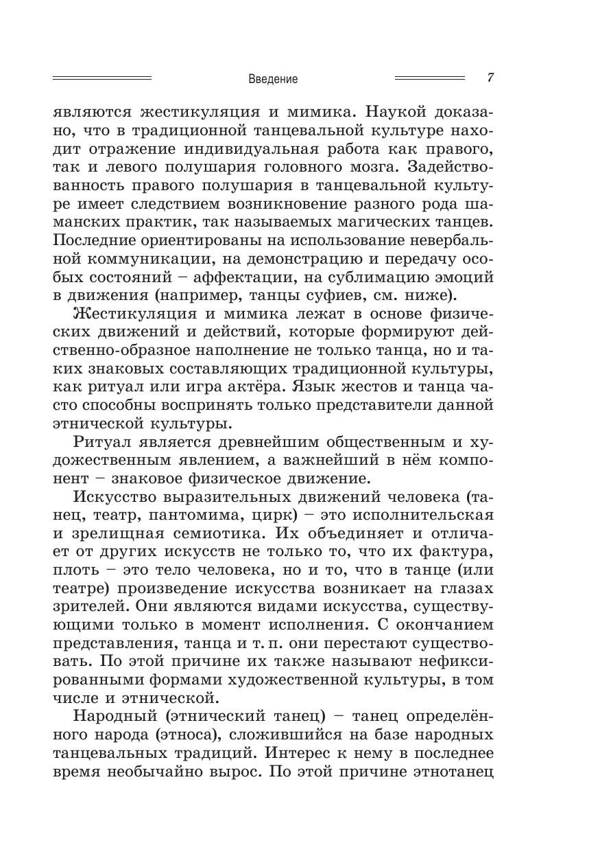 Учебное пособие является первым подобного рода изданием, посвященным систематическому анализу традиционной национальной танцевальной культуры народов зарубежных стран в рамках новой специальной дисциплины — «Этническая хореография». Учебное пособие предназначено студентам исторических факультетов университетов, изучающих этнографию народов мира. Оно может быть рекомендовано при изучении курсов «Фольклористика», «Народная художественная культура», «Теория и история хореографического искусства» в вузах культуры и искусств. В пособии этнический танец проанализирован в контексте культуры народов Азии, Африки, Америки, Австралии и Океании, где он сохранился в наиболее древней традиционной форме.
