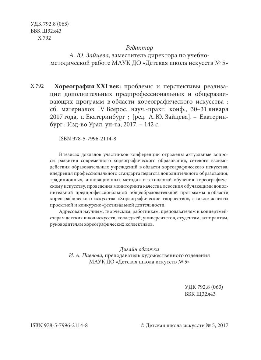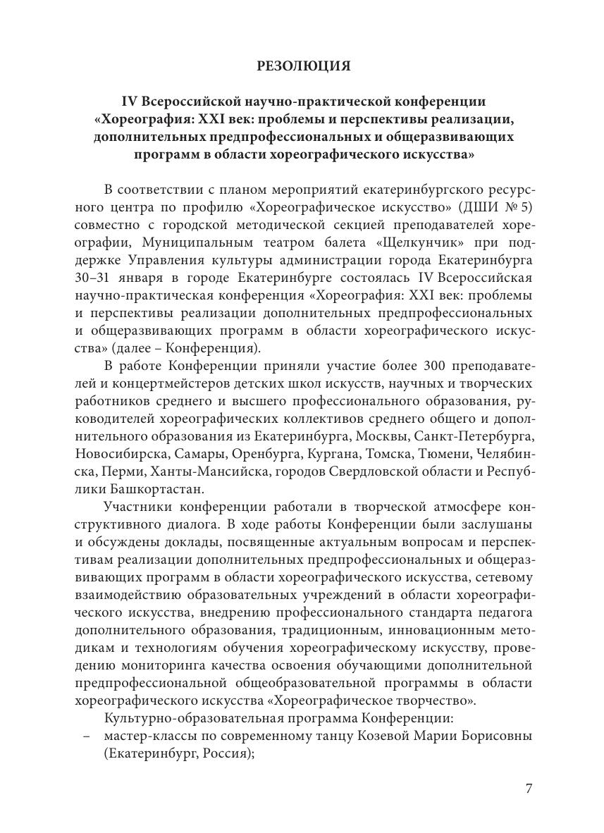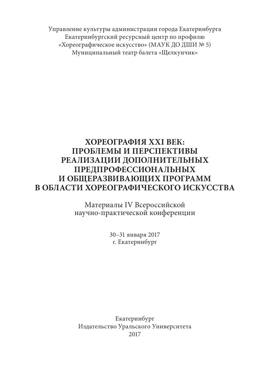 Хореография XXI век: проблемы и перспективы реализа- ции дополнительных предпрофессиональных и общеразвивающих программ в области хореографического искусства: сб. материалов IV Всерос. науч.-практ. конф., 30–31 января 2017 года, г. Екатеринбург