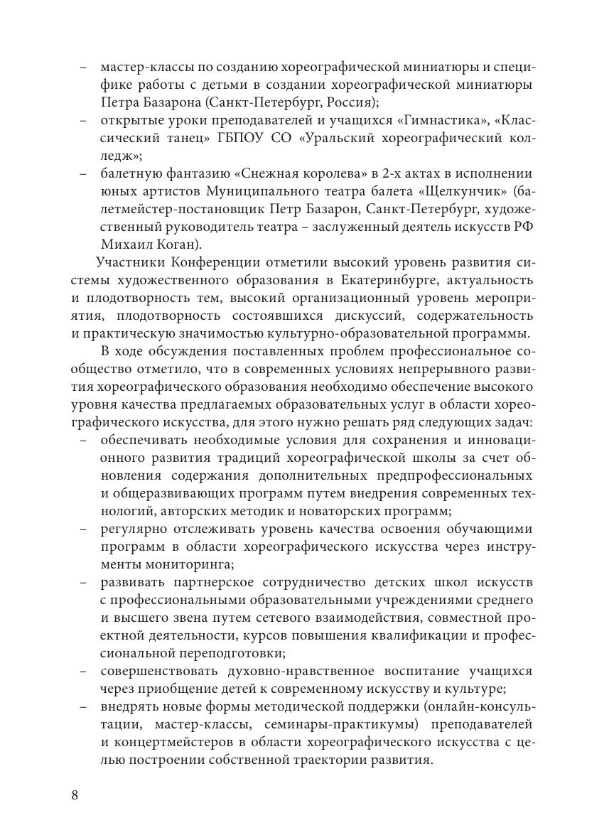 нительной предпрофессиональной общеобразовательной программы в области хореографического искусства «Хореографическое творчество», а также аспекты проектной и конкурсно-фестивальной деятельности. Адресован научным, творческим, работникам, преподавателям и концертмейстерам детских школ искусств, колледжей, университетов, студентам, аспирантам, руководителям хореографических коллективов.