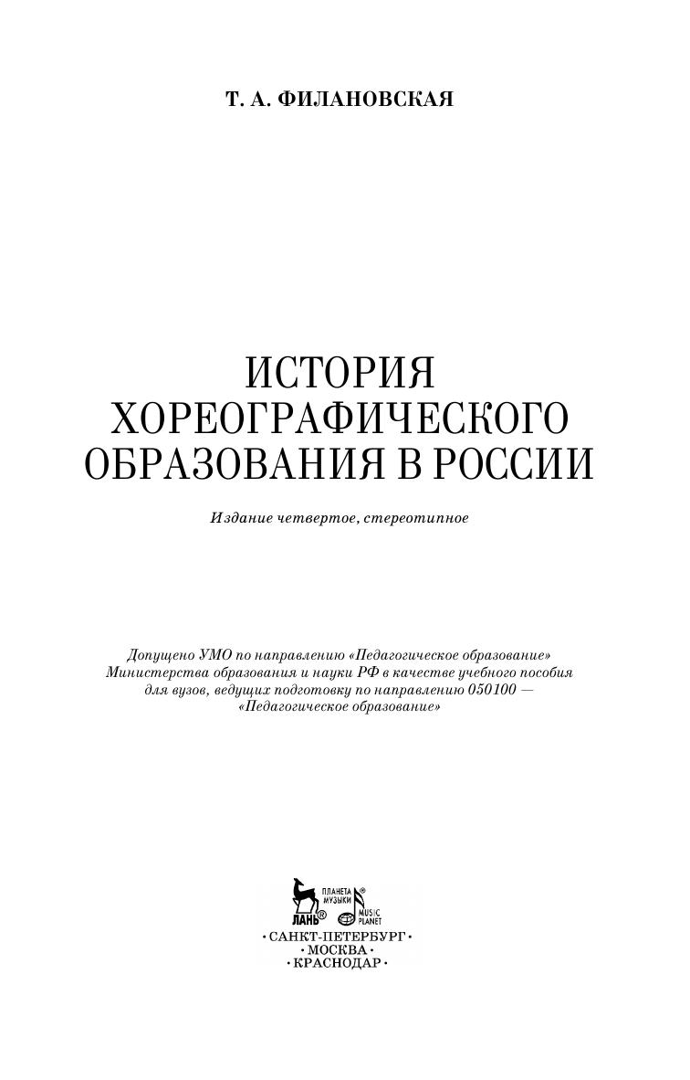 В учебном пособии рассматривается трехсотлетняя история отечественного хореографического образования. Выделяются основные этапы развития образования в области танца, дается характеристика внешних и внутренних факторов его исторической изменчивости. В контексте истории художественной культуры России реконструировано пять моделей профессионального хореографического образования. Определен вклад выдающихся балетмейстеров и педагогов-хореографов в формирование отечественной школы классического и народного танца.