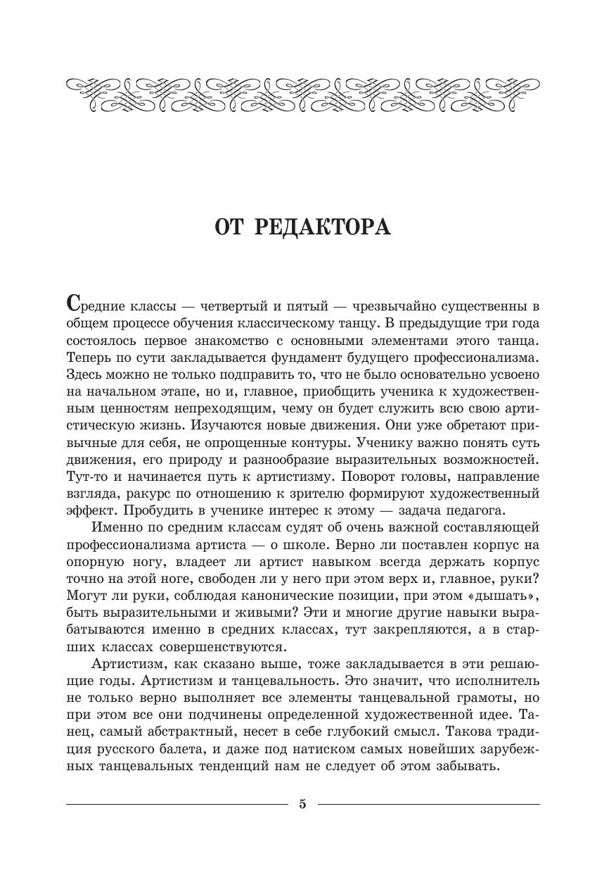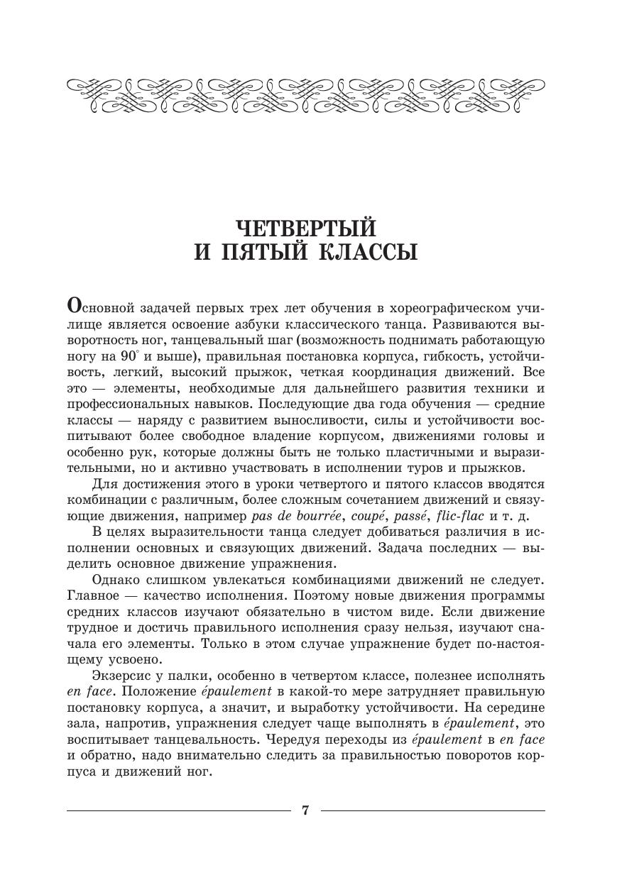 В книге Н.П.Базаровой изложена методика преподавания классического танца в четвертом и пятом классах балетной школы. В программу вводятся большие прыжки, усложняются заноски, начинается изучение туров в больших позах. Мышцы набирают силу, исполнение приобретает художественную окраску и выразительность. Закладывается крепкая основа профессиональных навыков, которые необходимы для дальнейшего технического развития и совершенствования учащихся. В книге отражен и личный опыт педагога с почти сорокалетним стажем, и опыт всего Ленинградского хореографического училища, которое непрерывно совершенствует методику обучения классическому танцу. In this book N.P. Bazarova sets out the methodology of teaching classical dance in the fourth and fifth classes of ballet school. The program entered the big jumps, «zanoski» are complicated, begins study tours in the big poses. The muscles are gaining strength, the performance becomes an artistic color and expressiveness. Mortgaging a strong foundation of skills that are needed for the further technical development and improvement of students. The book reflects the personal experience of the teacher with nearly forty years of experience and expertise in all of the Leningrad Choreographic School, which is continually improving the methods of teaching classical dance.