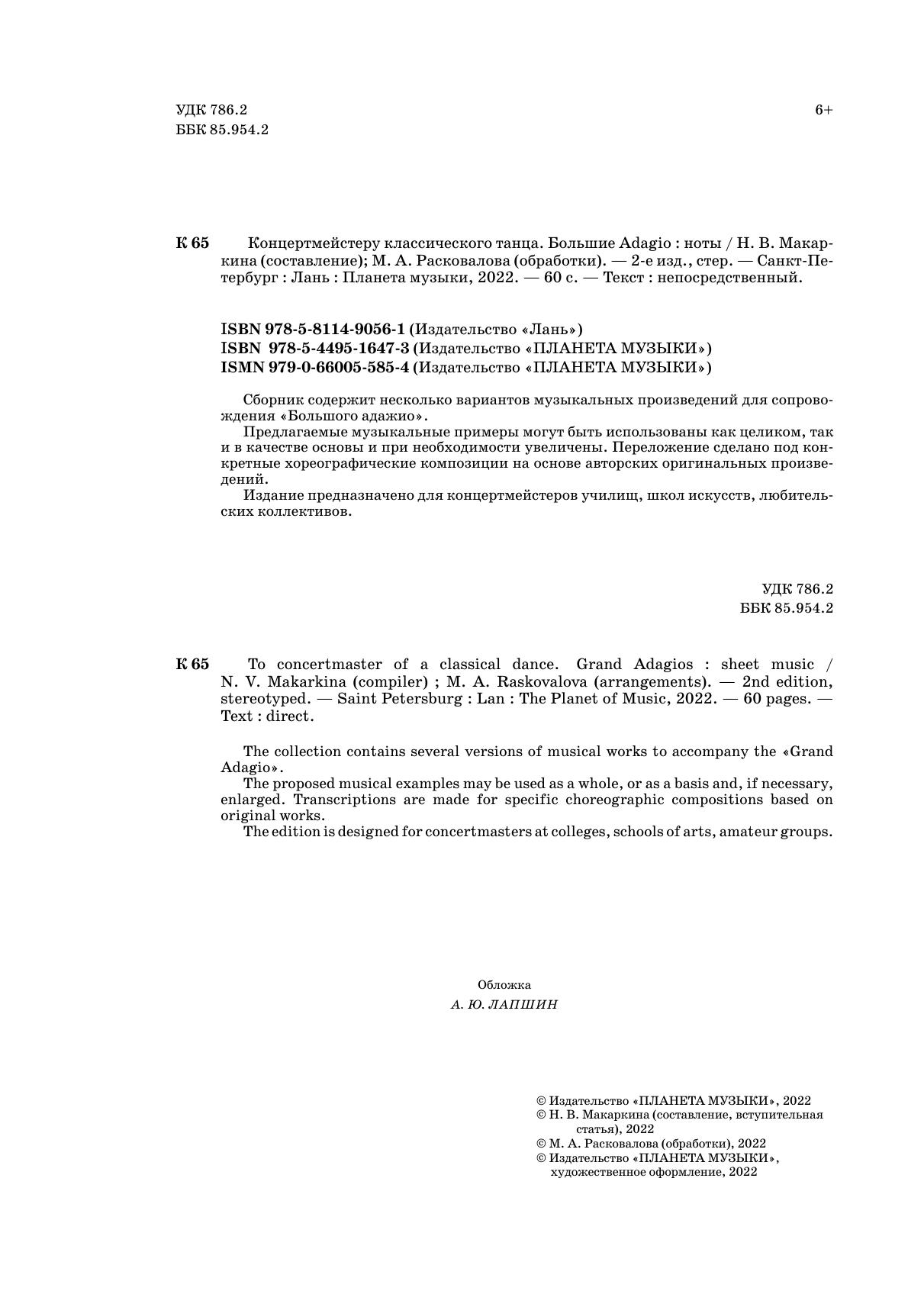 Сборник содержит несколько вариантов музыкальных произведений для сопровождения "Большого адажио".