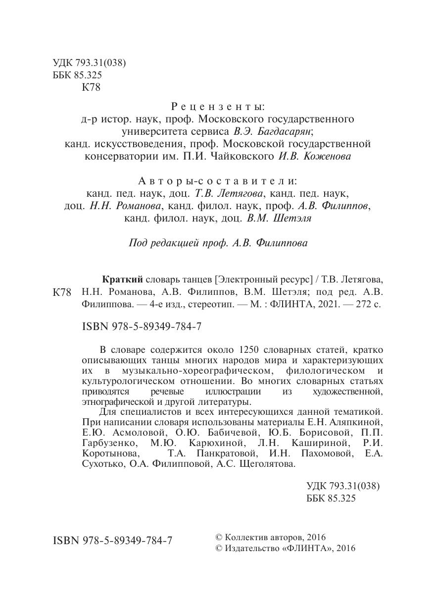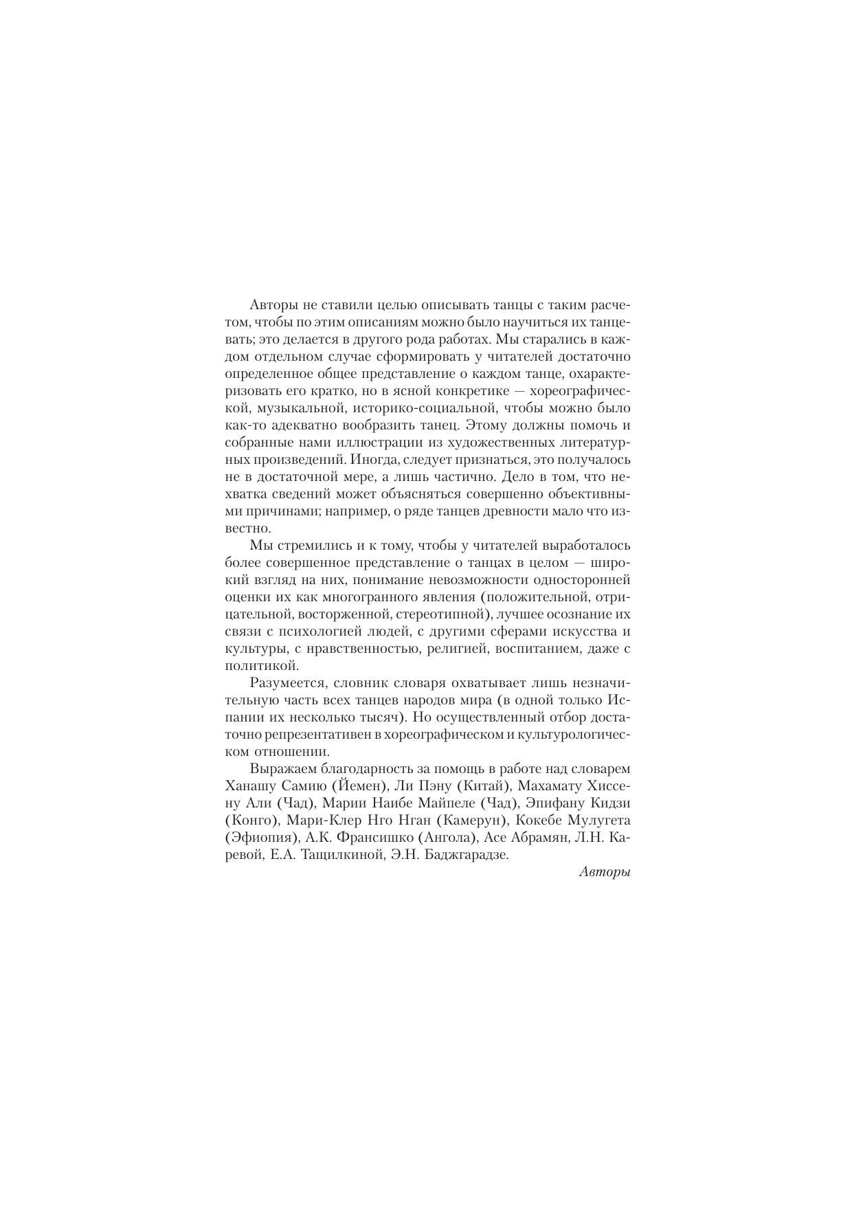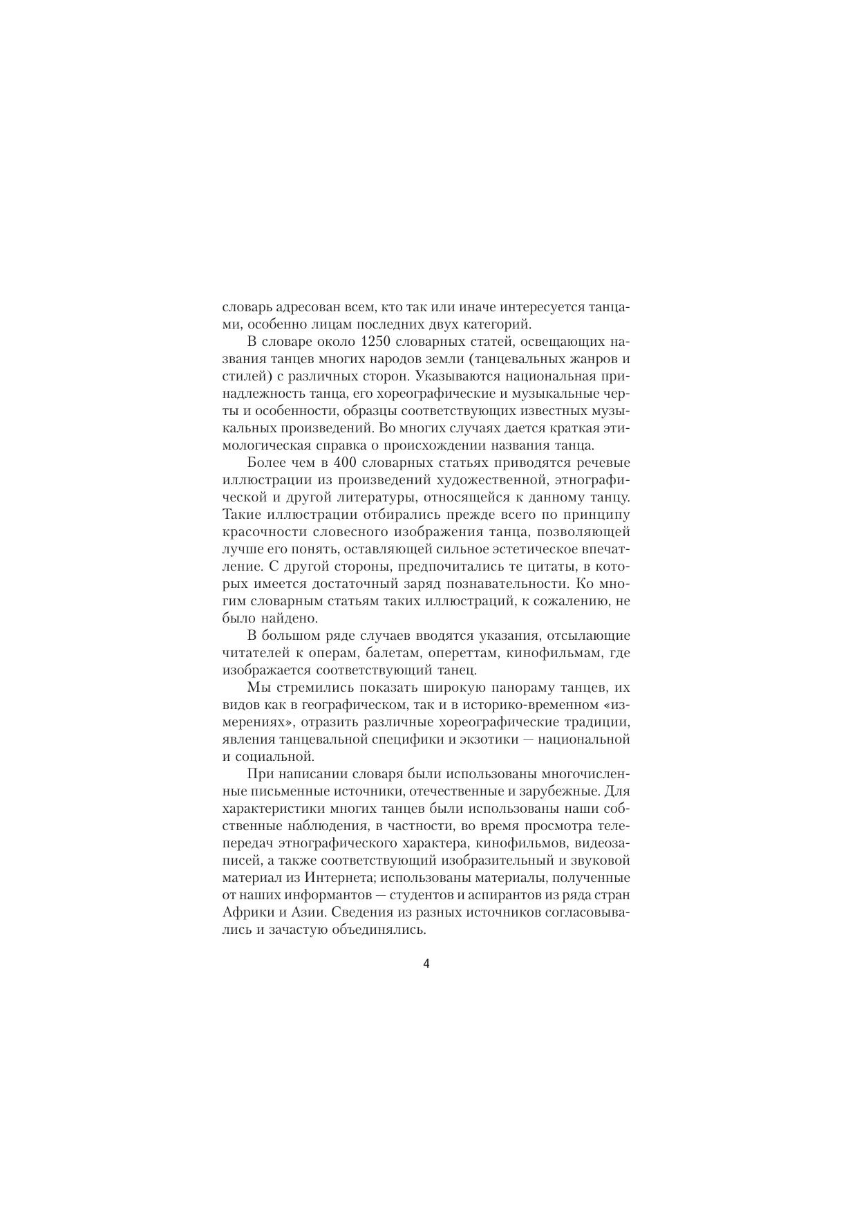 В словаре содержится около 1250 словарных статей, кратко описывающих танцы многих народов мира и характеризующих их в музыкально-хореографическом, филологическом и культурологическом отношении. Во многих словарных статьях приводятся речевые иллюстрации из художественной, этнографической и другой литературы. Для специалистов и всех интересующихся данной тематикой. При написании словаря использованы материалы Е.Н. Аляпкиной, Е.Ю. асмоловой, О.Ю. Бабичевой, Ю.Б. Борисовой, П.П. Гарбузенко, М.Ю. Карюхиной, Л.Н. Кашириной, Р.И. Коротынова, Т.А. Панкратовой, И.Н. Пахомовой, Е.А. Сухотько, О.А. Филипповой, А.С. Щеголятова.