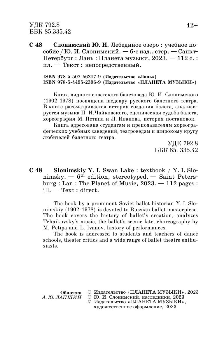 Книга видного советского балетоведа Ю.И.Слонимского (1902-1978) посвящена шедевру русского балетного театра. В книге рассматривается история создания балета, анализируется музыка П.И.Чайковского, сценическая судьба балета, хореография М.Петипа и Л.Иванова, история постановок. Книга адресована студентам и преподавателям хореографических учебных заведений, театроведам и широкому кругу любителей балетного театра.