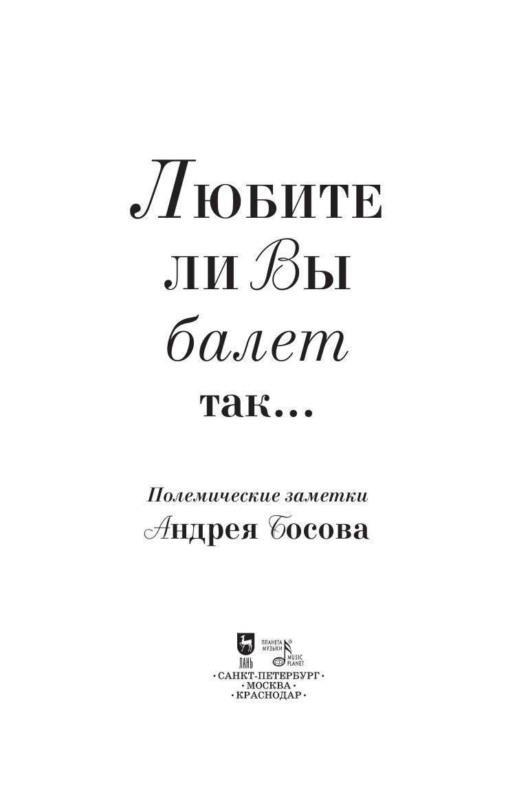 Любите ли вы балет так… Полемические заметки Андрея Босова Босов А. П.