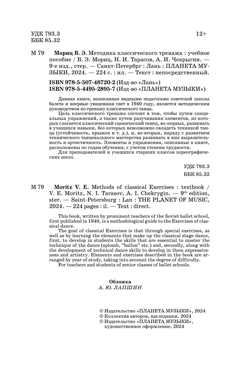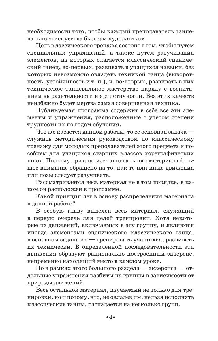 Данная книга, написанная видными педагогами советской школы балета и впервые увидевшая свет в 1940 году, является методическим руководством по тренажу классического танца. Цель классического тренажа состоит в том, чтобы путем специальных упражнений, а также путем разучивания элементов, из которых слагается классический сценический танец, во-первых, развивать в учащихся навыки, без которых невозможно овладеть техникой танца (устойчивость, прыжок и т. д.), и, во-вторых, наряду с развитием технического танцевального мастерства развивать в них выразительность и артистичность. Элементы и упражнения, описанные в книге, расположены по годам обучения, с учетом степени трудности. Для преподавателей и учащихся старших классов хореографических школ.