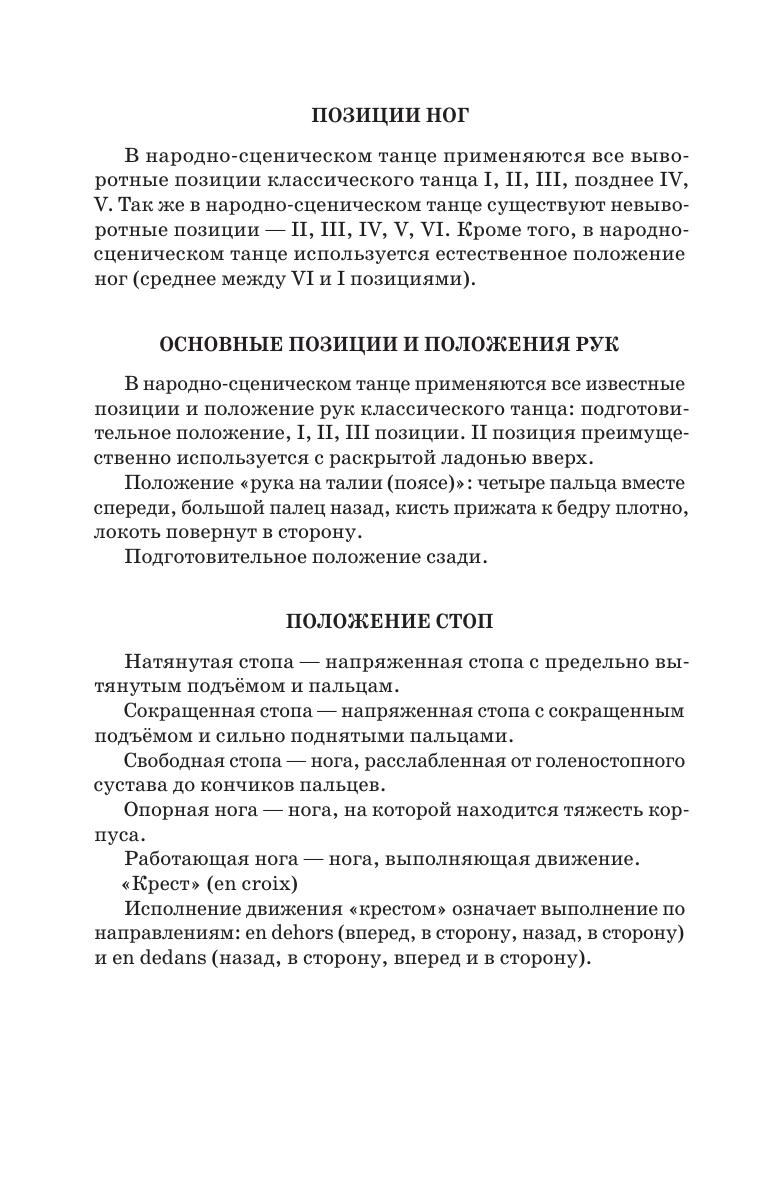 Данное учебное пособие включает в себя основные и вспомогательные движения экзерсиса у палки, дается подробный разбор движений и основных методических требований к их исполнению. Предложена система знаний о направлениях в хореографии, основные понятия, терминология, танцевальная лексика дисциплины «Народно-сценической танец». Учебное пособие предназначено для студентов и преподавателей хореографических отделений учебных заведений. This textbook includes the main and auxiliary movements of the exercise at the barre, a detailed analysis of the movements and the main methodological requirements for their performin is given. A system of knowledge about directions in choreography, basic concepts, terminology, dance vocabulary of the discipline “Folk Stage Dance” is proposed. The textbook is intended for students and teachers of choreographic departments of higher schools.