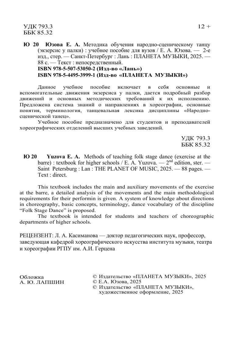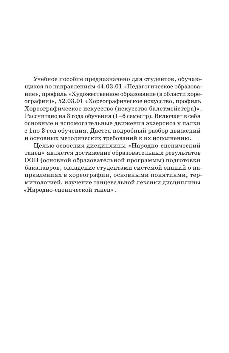 Данное учебное пособие включает в себя основные и вспомогательные движения экзерсиса у палки, дается подробный разбор движений и основных методических требований к их исполнению. Предложена система знаний о направлениях в хореографии, основные понятия, терминология, танцевальная лексика дисциплины «Народно-сценической танец». Учебное пособие предназначено для студентов и преподавателей хореографических отделений учебных заведений. This textbook includes the main and auxiliary movements of the exercise at the barre, a detailed analysis of the movements and the main methodological requirements for their performin is given. A system of knowledge about directions in choreography, basic concepts, terminology, dance vocabulary of the discipline “Folk Stage Dance” is proposed. The textbook is intended for students and teachers of choreographic departments of higher schools.