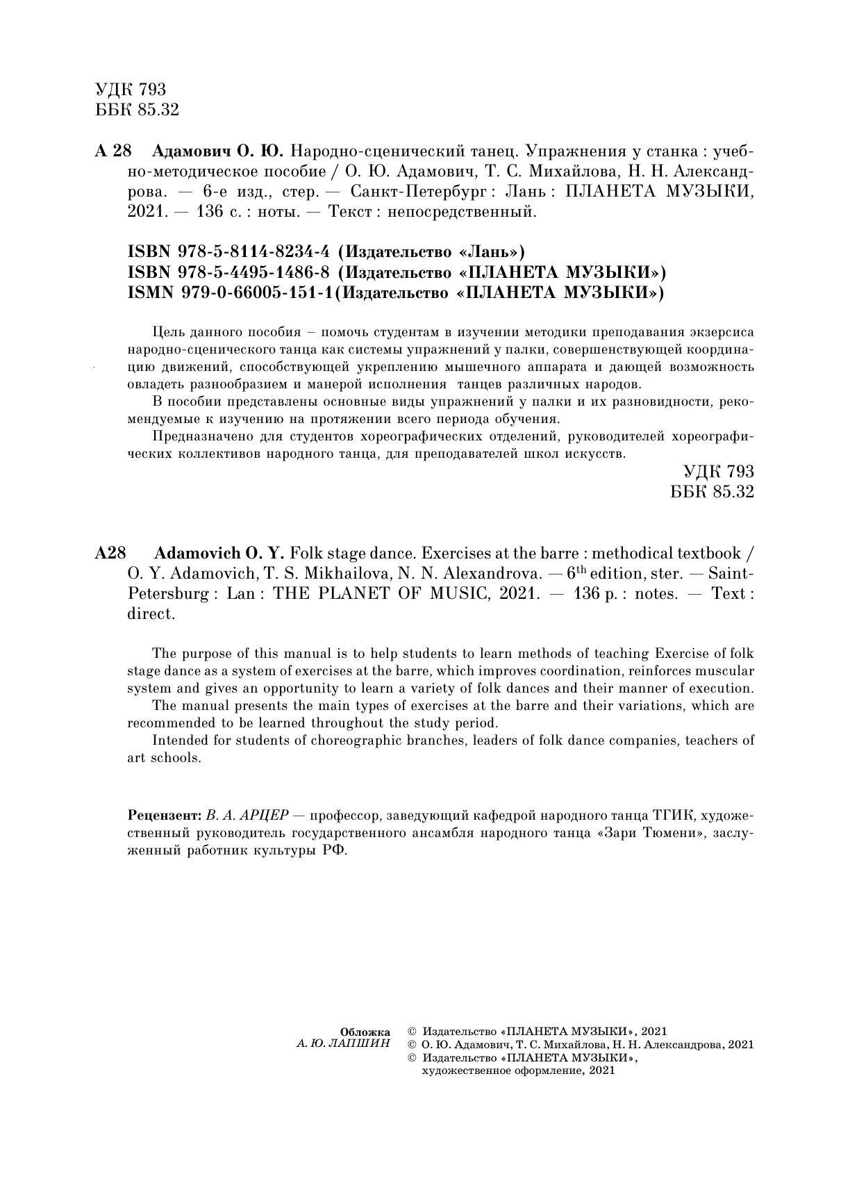 Авторы: Адамович О. Ю., Михайлова Т. С., Александрова Н. Н.