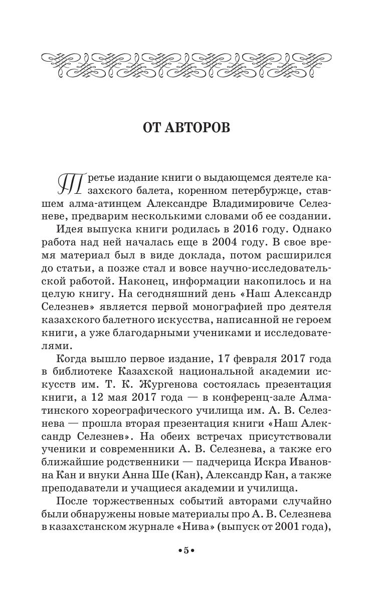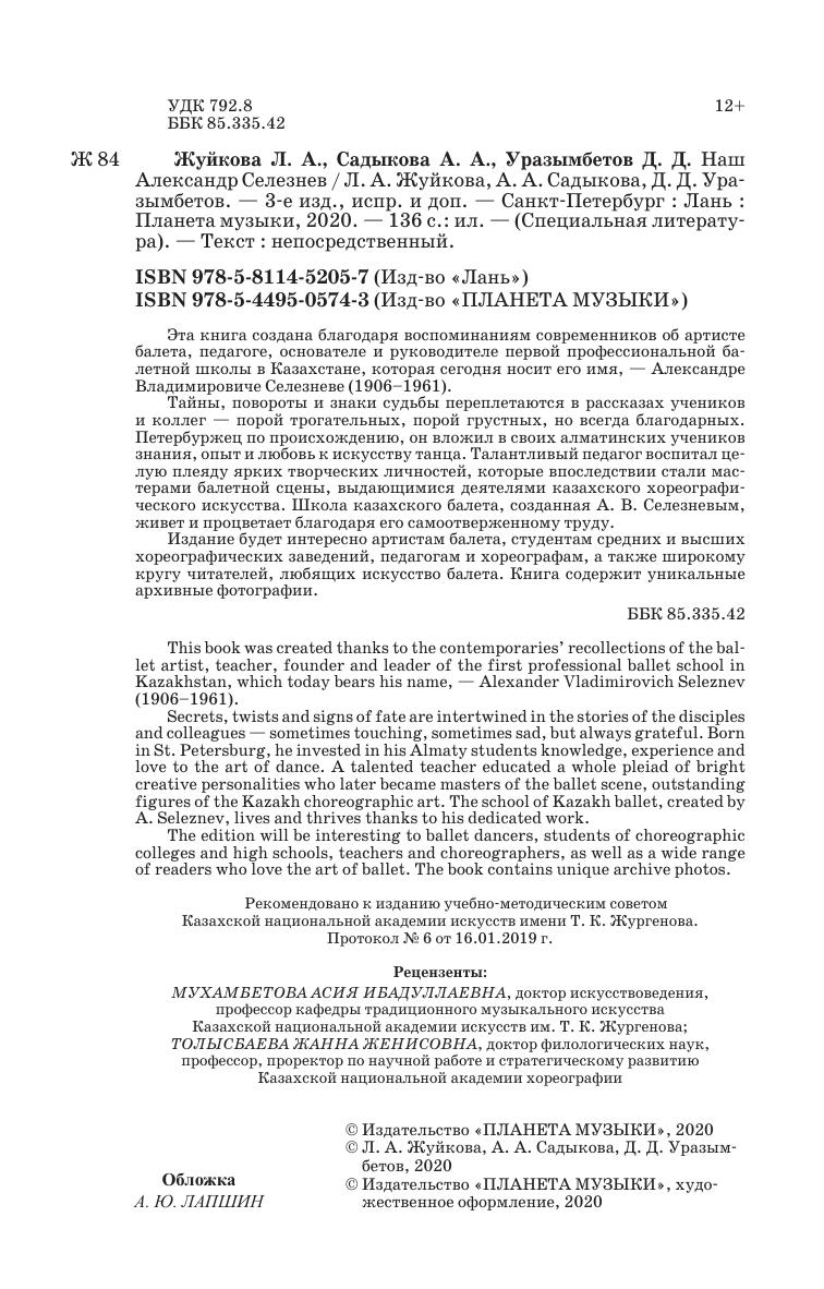 Эта книга создана благодаря воспоминаниям современников об артисте балета, педагоге, основателе и руководителе первой профессиональной балетной школы в Казахстане, которая сегодня носит его имя, — Александре Владимировиче Селезневе (1906–1961).