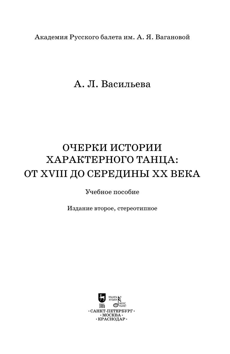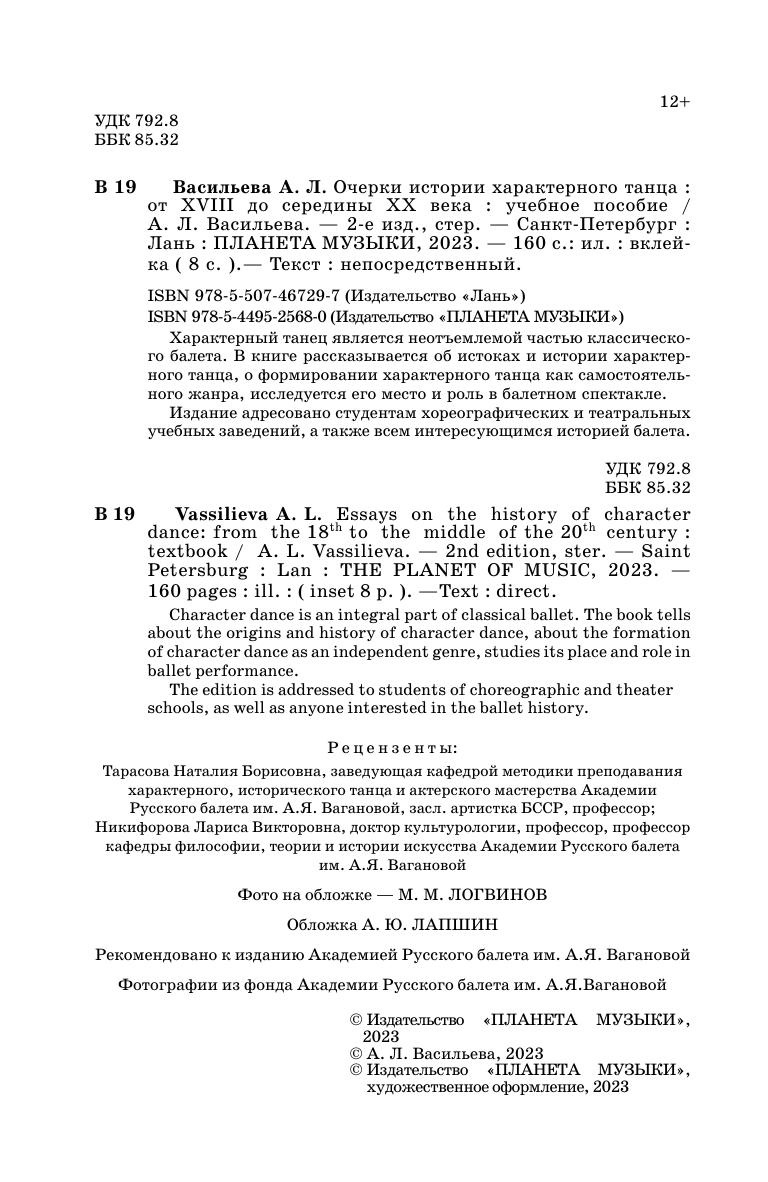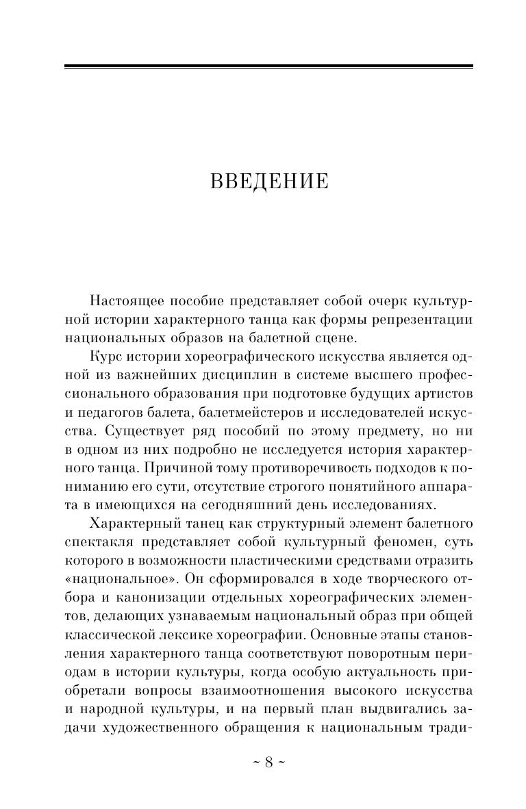 Характерный танец является неотъемлемой частью классического балета. В книге рассказывается об истоках и истории характерного танца, о формировании характерного танца как самостоятельного жанра, исследуется его место и роль в балетном спектакле. Издание адресовано студентам хореографических и театральных учебных заведений, а также всем интересующимся историей балета. Character dance is an integral part of classical ballet. The book tells about the origins and history of character dance, about the formation of character dance as an independent genre, studies its place and role in ballet performance. The edition is addressed to students of choreographic and theater schools, as well as anyone interested in the ballet history.