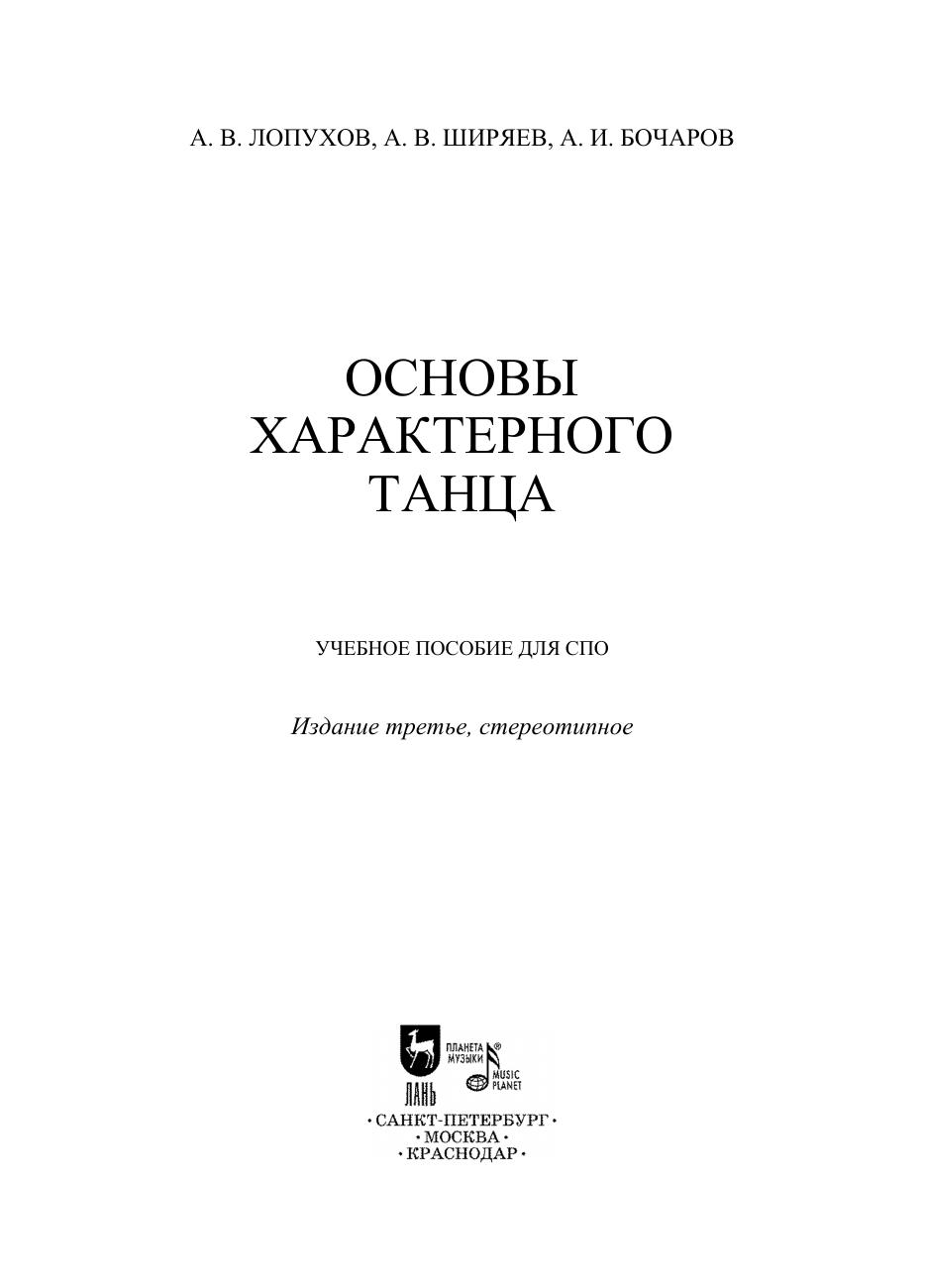Книга, созданная талантливыми балетмейстерами, танцовщиками и педагогами, обобщает опыт преподавания основ характерного танца в Ленинградском хореографическом училище (ныне — Академии русского балета им. А. Я. Вагановой). Первое ее издание вышло в 1938 году и ныне является библиографической редкостью. Однако содержание не утратило своего значения как методического пособия: здесь представлены основные движения танцев разных народов и методика их преподавания, определяется их связь с классическим танцем и отличия от него. Пособие предназначено для преподавателей и студентов средних специальных учебных заведений. The book, created by talented choreographers, dancers and teachers, summarizes the experience of teaching the basics of characteristic dance in the Leningrad Choreographic School (now — the Vaganova Academy of Russian Ballet). Its first edition was published in 1938 and is now a bibliographic rarity. However, the content has not lost its significance as a methodological manual: here the main movements of the dances of different nations and the methods of their teaching are presented, their connection with classical dance and differences from it are determined. The manual is intended for teachers and students of colleges.