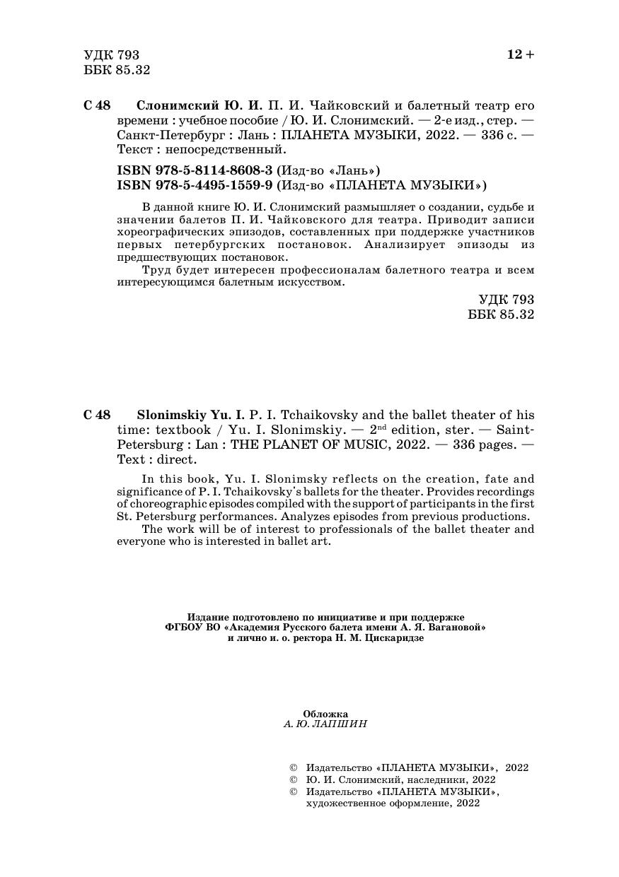 In this book, Yu. I. Slonimsky reflects on the creation, fate and significance of P. I. Tchaikovsky's ballets for the theater. Provides recordings of choreographic episodes compiled with the support of participants in the first St. Petersburg performances. Analyzes episodes from previous productions.