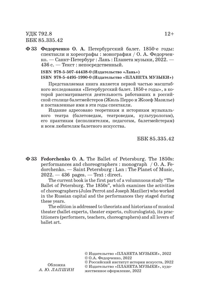 Представляемая книга является первой частью масштабного исследования «Петербургский балет. 1850-е годы», в которой рассматривается деятельность работавших в российской столице балетмейстеров (Жюль Перро и Жозеф Мазилье) и поставленные ими в эти годы спектакли.