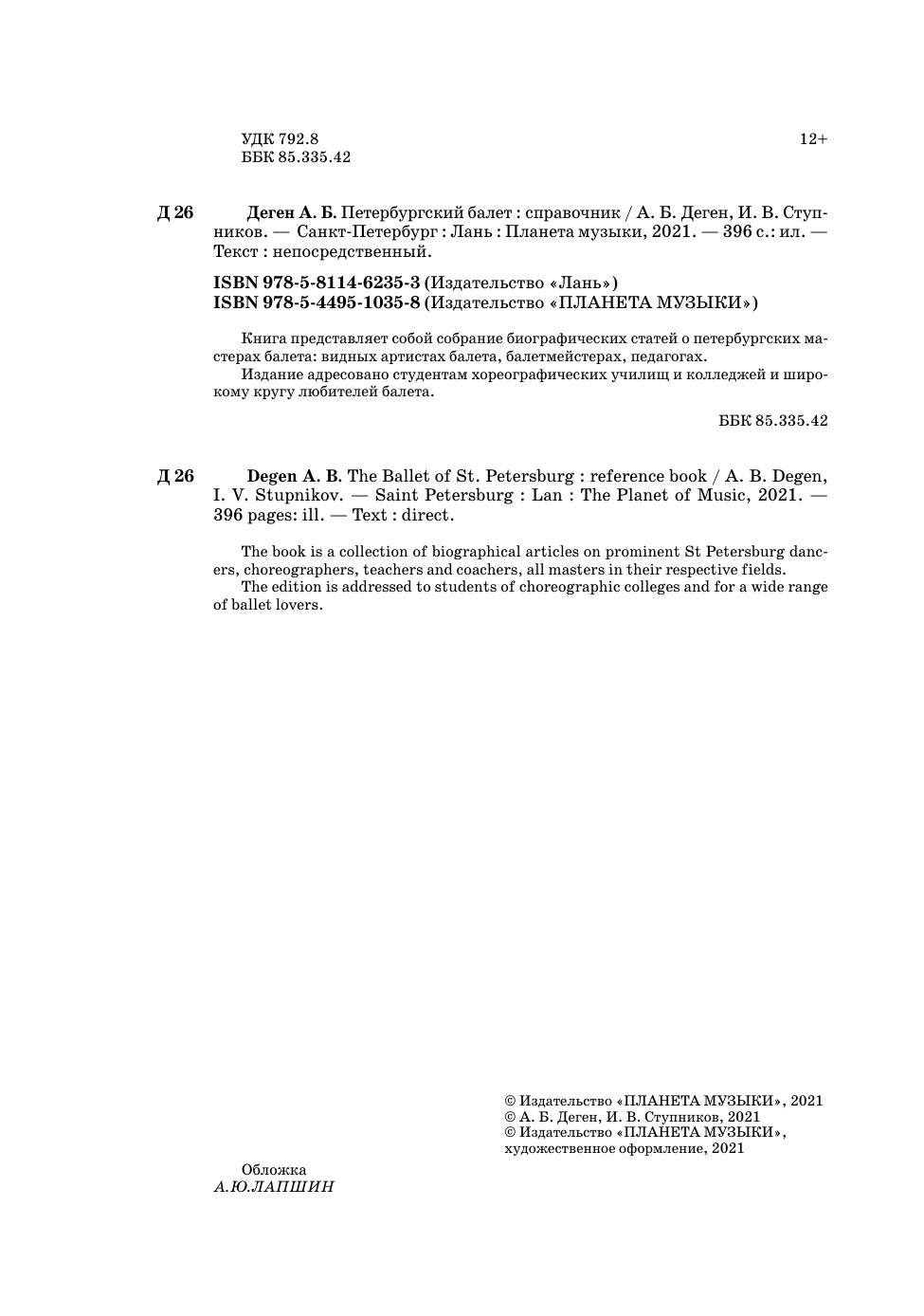 The book is a collection of biographical articles on prominent St Petersburg dancers, choreographers, teachers and coachers, all masters in their respective fields.