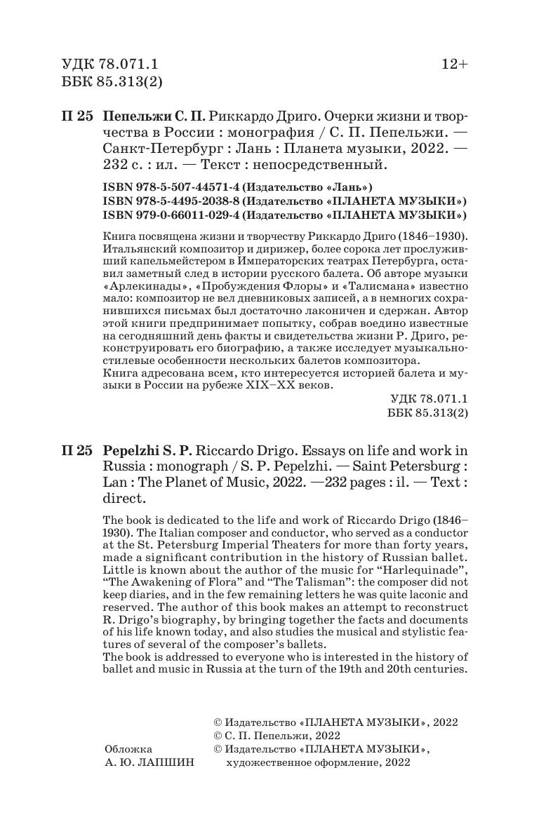 Эта книга посвящена жизни и творчеству одной из таких скрытых фигур – Риккардо Дриго (1846–1930). Итальянский композитор и дирижер, более сорока лет прослуживший капельмейстером в Императорских театрах Петербурга, он оставил заметный след в истории русского балета. Об авторе музыки «Арлекинады», «Пробуждения Флоры» и «Талисмана» известно мало: композитор не вел дневниковых записей, а в немногих сохранившихся письмах был достаточно лаконичен и сдержан. Автор этой книги предпринимает попытку, собрав воедино известные на сегодняшний день факты и свидетельства жизни Р. Дриго, реконструировать его биографию, а также исследует музыкально-стилевые особенности нескольких балетов композитора.