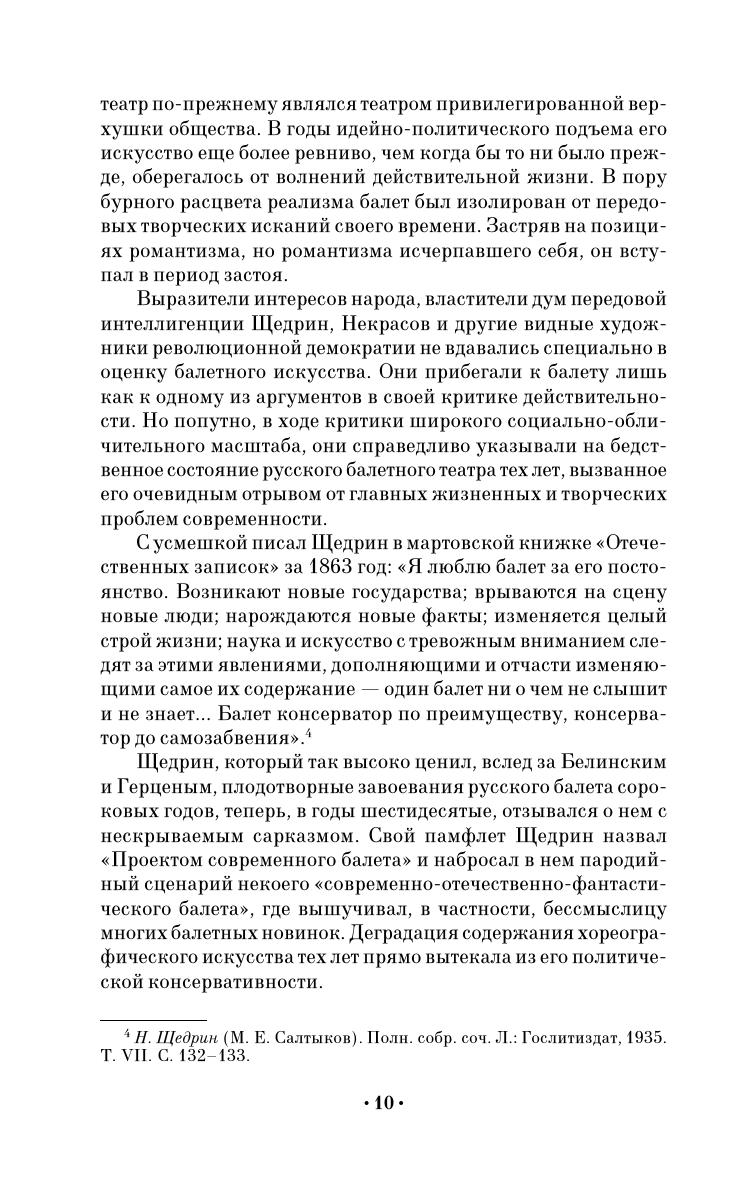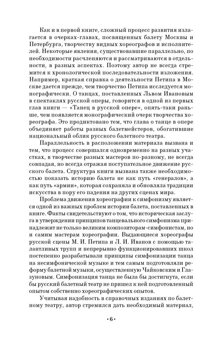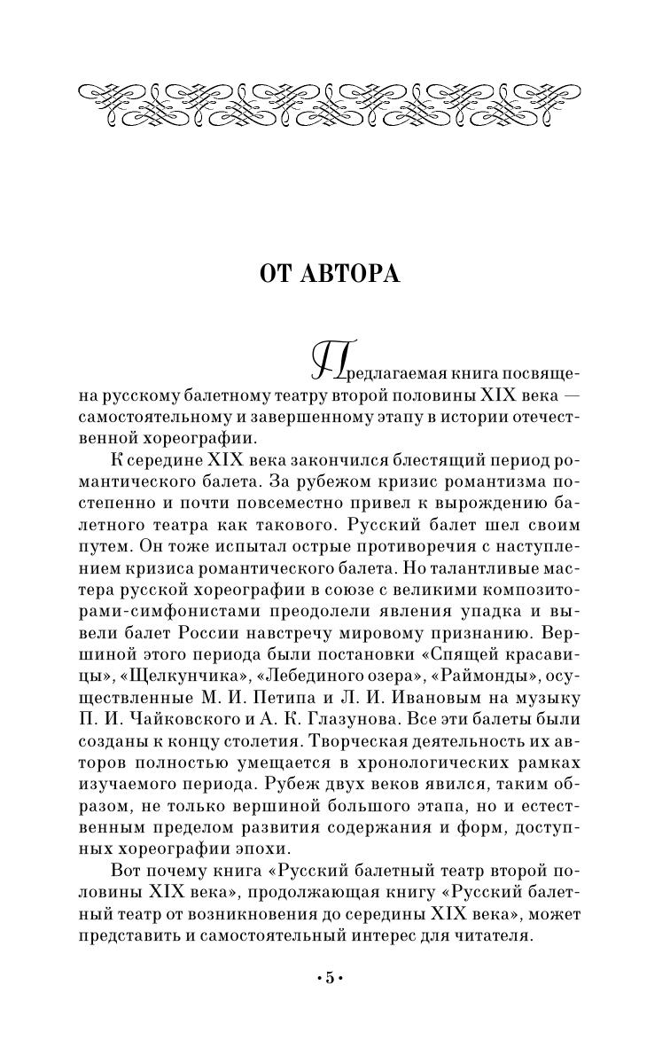Книга посвящена времени расцвета русского балетного театра — второй половине XIX века. Рассматривается общий процесс развития русской хореографии, деятельность балетных театров Петербурга и Москвы, творчество крупнейших балетмейстеров и танцовщиков России. В отдельных главах показан творческий путь балетмейстеров Мариуса Петипа и Льва Иванова, которые привели русский балетный театр к союзу с композиторами-симфонистами Чайковским и Глазуновым. Автор воссоздает творческий облик замечательных русских танцовщиц Муравьевой, Лебедевой, Суровщиковой-Петипа, Собещанской, Карпаковой, Горшенковой, Гейтен, Рославлевой и др.; танцовщиков Соколова, Гельцера, Домашева, Гердта, Карсавина, Стуколкина и др. Одна из глав книги посвящена итальянским танцовщицам Цуки, Леньяни, Брианца, танцовщику Чекетти и др., работавшим в русском балете.