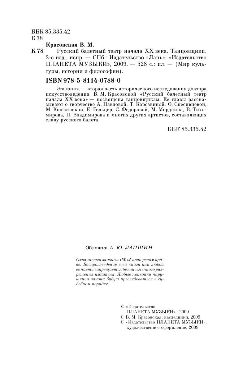 Эта книга — вторая часть исторического исследования доктора искусствоведения В.М. Красовской «Русский балетный театр начала XX века» — посвящена танцовщикам. Ее главы рассказывают о творчестве А. Павловой, Т. Красавиной, О. Спесивцевой, М. Кшесинской, Е. Гельцер, С. Федоровой, М. Мордкина, В. Тихомирова, П. Владимирова и многих других артистов, составляющих славу русского балета.