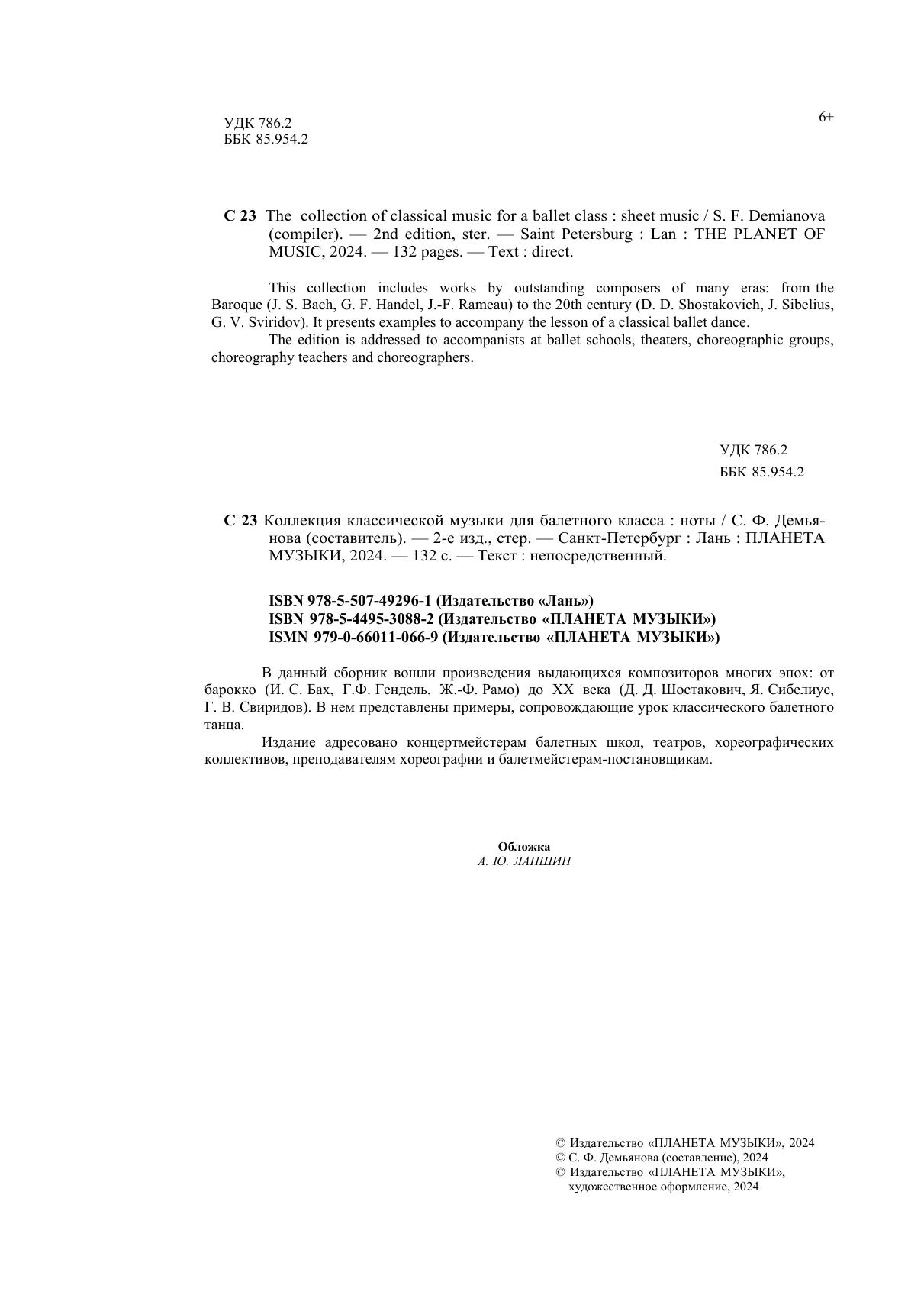 В данный сборник вошли произведения композиторов разных эпох: от Барокко (Бах, Гендель, Рамо) до XX века (Шостакович, Сибелиус, Свиридов). Музыкальный материал, представленный в соответствии с последовательностью балетного класса, может быть использован на уроках классического и характерного танца, а также для различных хореографических постановок. Издание предназначено для концертмейстеров, преподавателей хореографии и балетмейстеров - постановщиков.