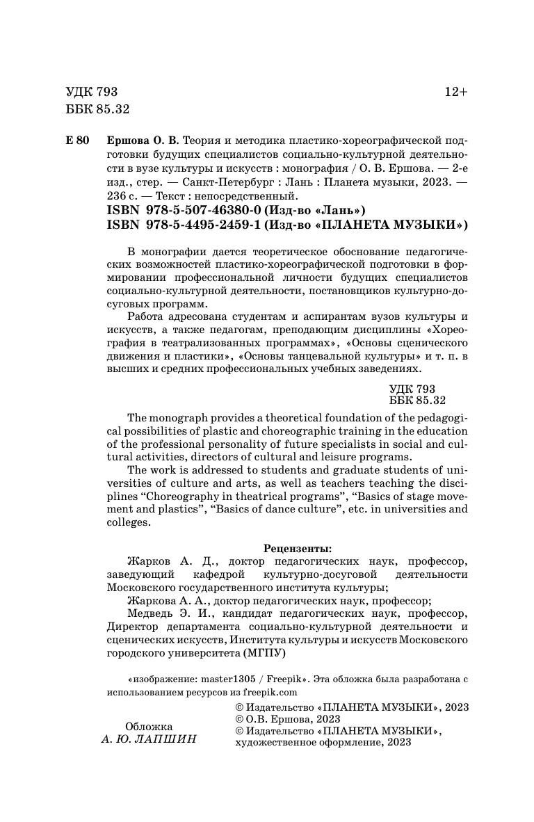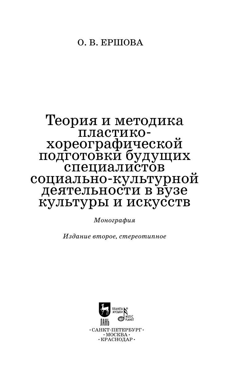 Теория и методика пластико-хореографической подготовки будущих специалистов социально-культурной деятельности в вузе культуры и искусств Ершова О. В.