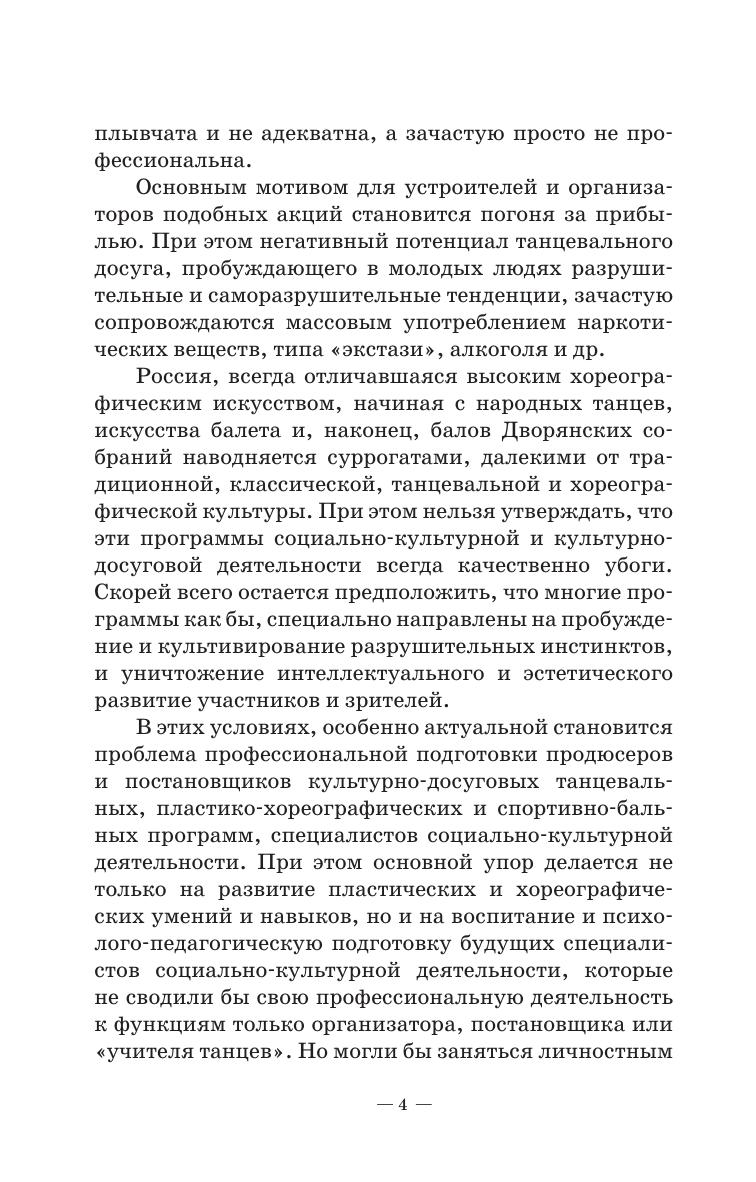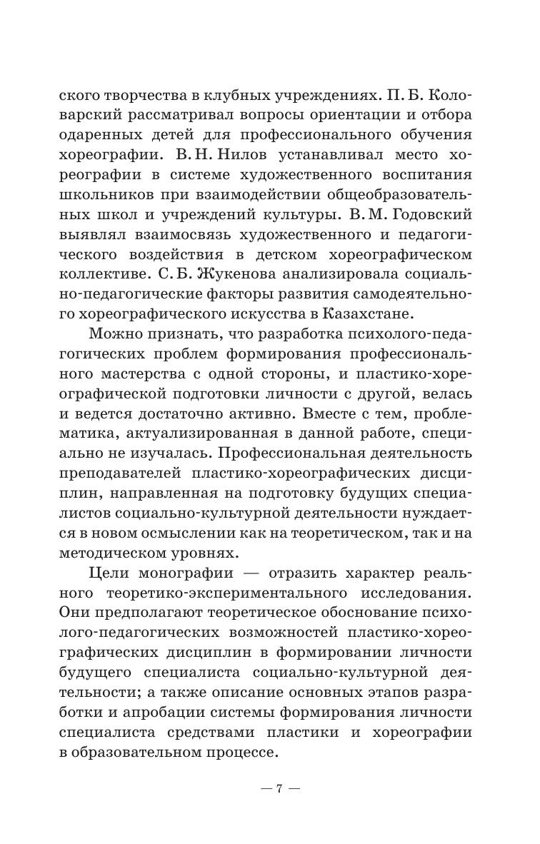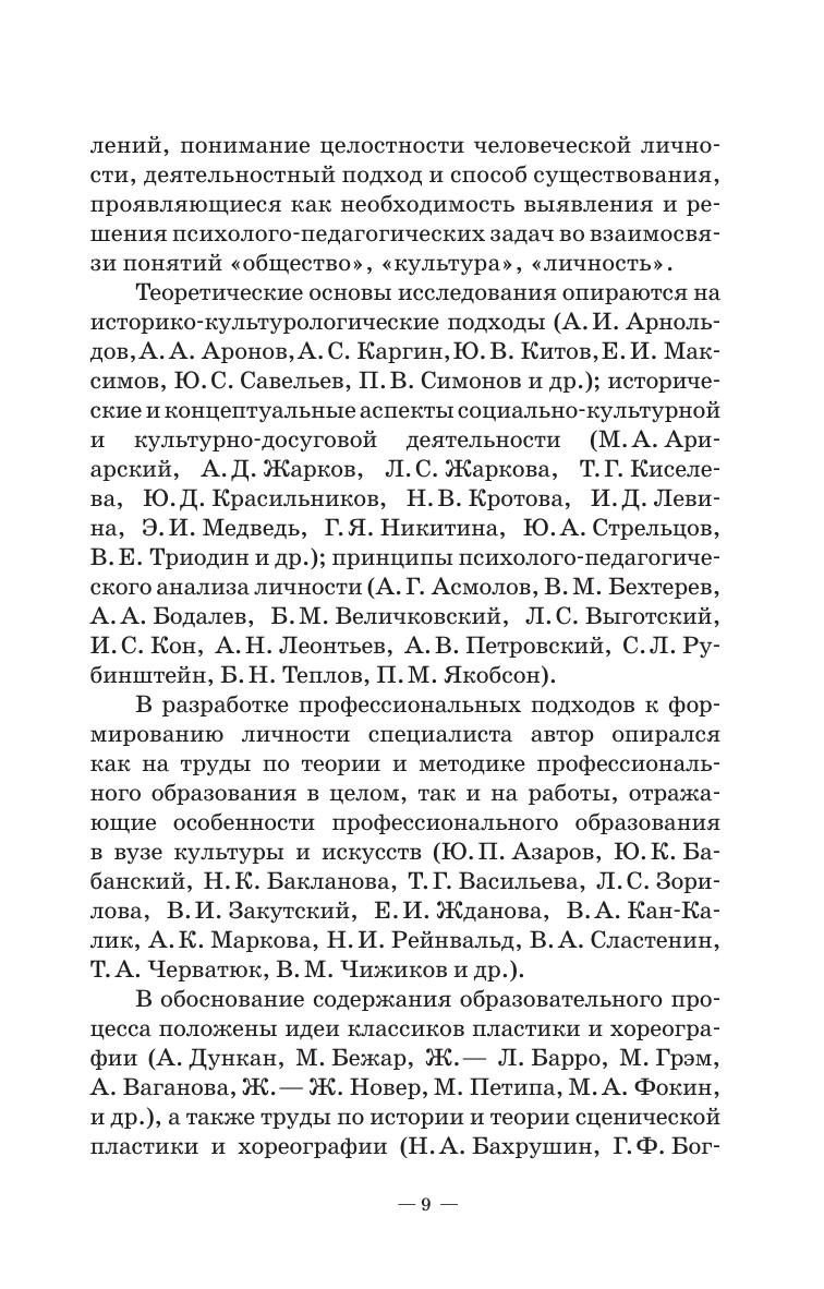 В монографии дается теоретическое обоснование педагогических возможностей пластико-хореографической подготовки в формировании профессиональной личности будущих специалистов социально-культурной деятельности, постановщиков культурно-досуговых программ.