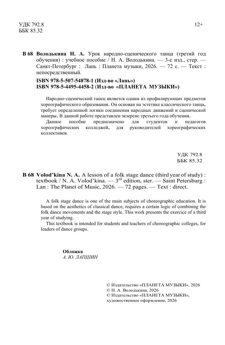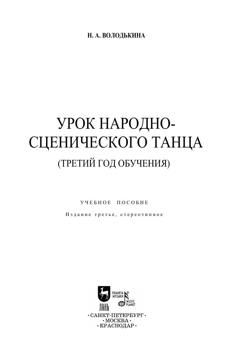 Народно-сценический танец является одним из профилирующих предметов хореографического образования. Он основан на эстетике классического танца, требует определенной логики соединения народных движений и сценической манеры. В данной работе представлен экзерсис третьего года обучения. Данное пособие предназначено для студентов и преподавателей хореографических колледжей, для руководителей хореографических коллективов. A folk stage dance is one of the main subjects of choreographic education. It is based on the aesthetics of classical dance, requires a certain logic of combining the folk dance movements and the stage style. This work presents the exercice of a third year of studying. This textbook is intended for students and teachers of choreographic colleges, for leaders of dance groups.