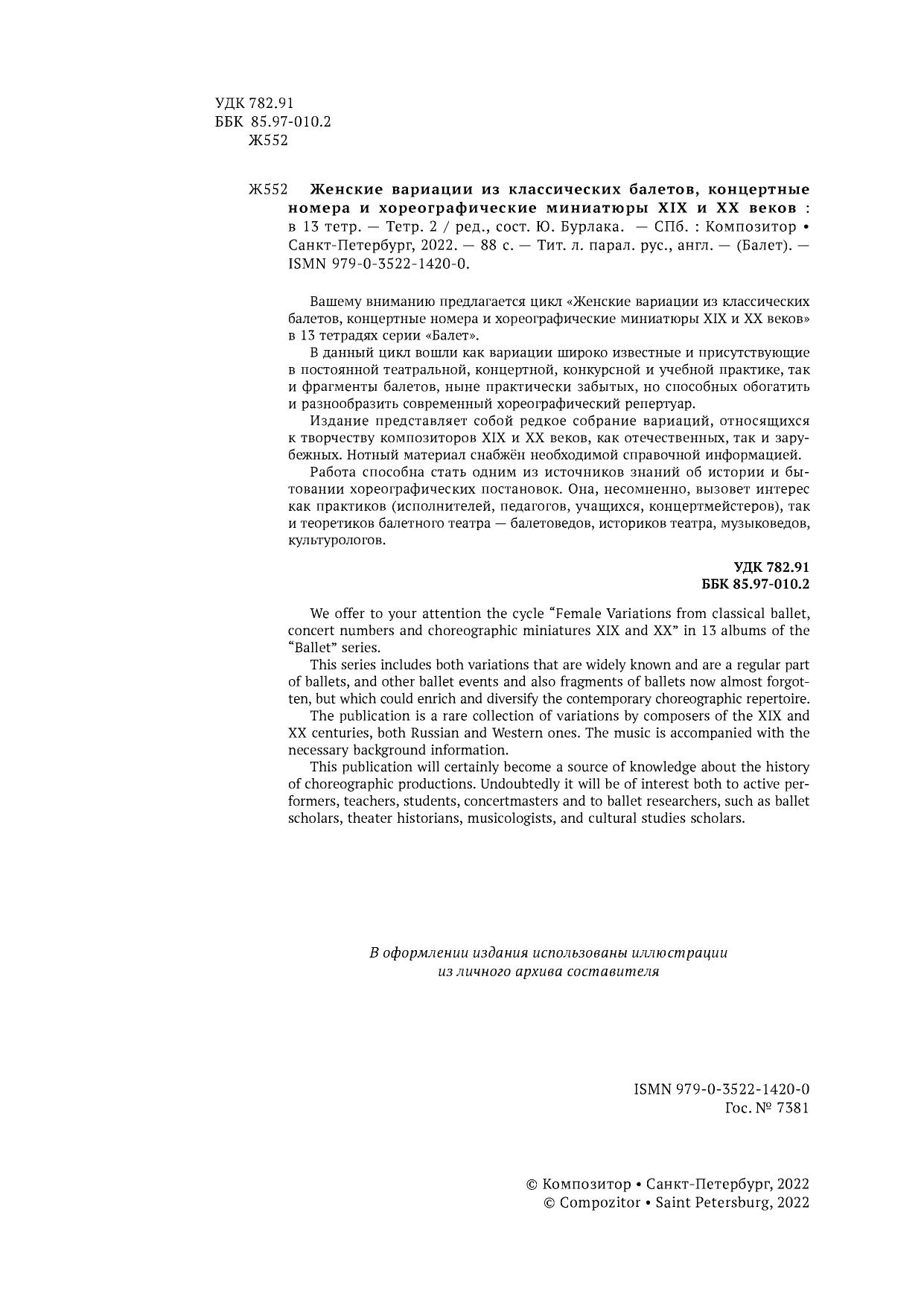 Женские вариации из классических балетов, концертные номера и хореографические миниатюры XIX и XX веков. В 13 тетрадях. Тетрадь 2. Серия «Балет»