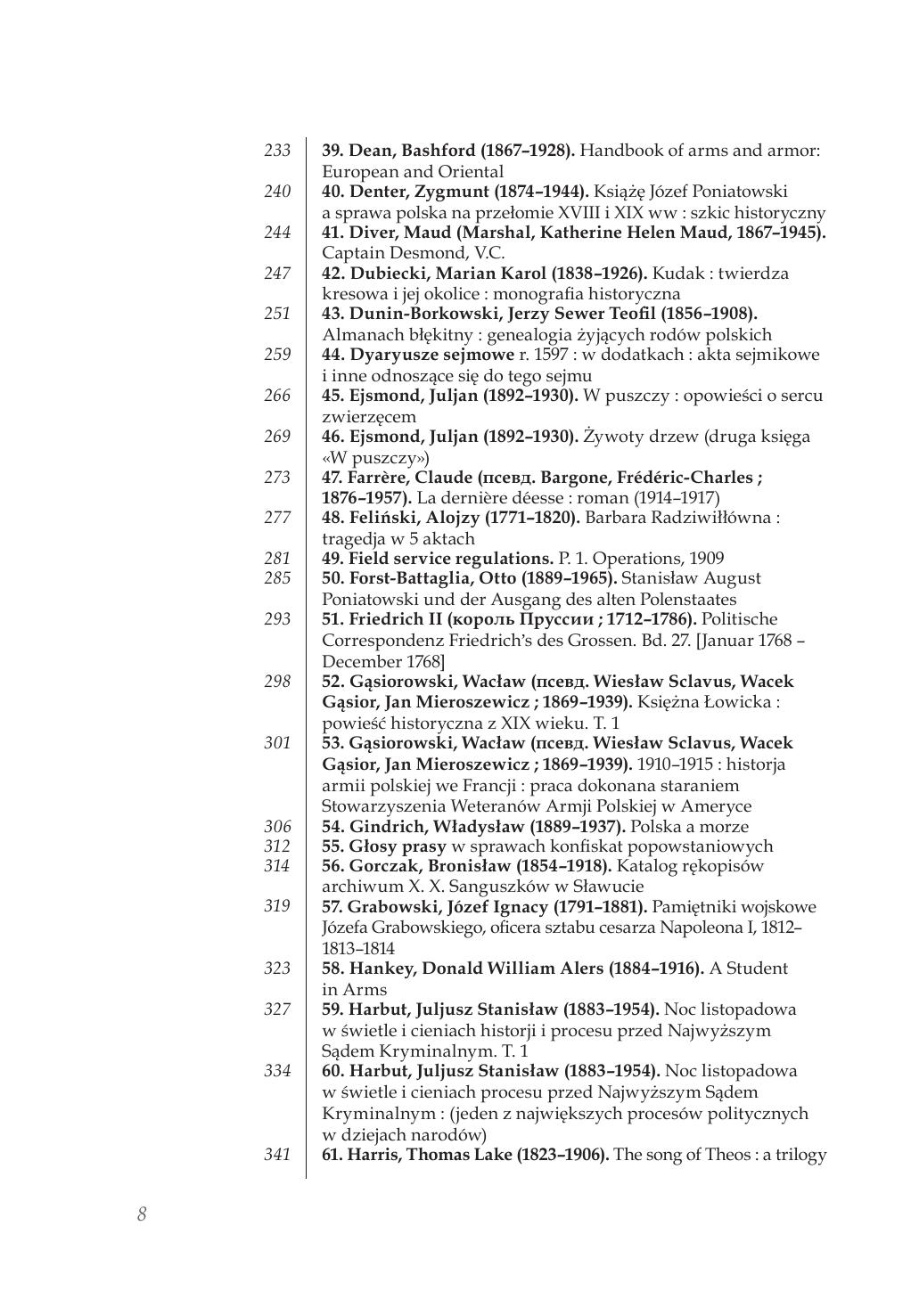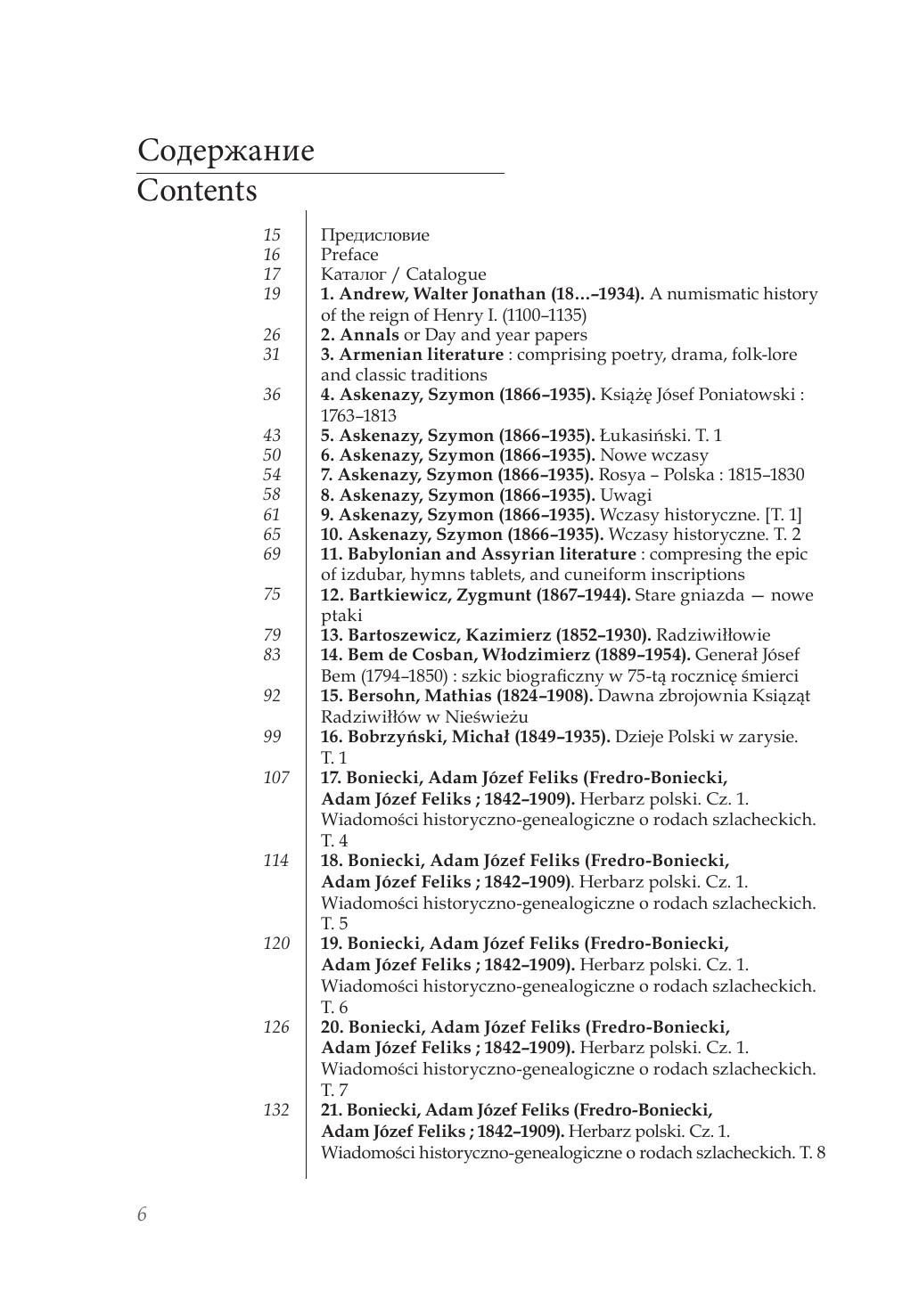 Содержит первое полное описание изданий первой половины XX в. из книжных собраний Несвижской ординации князей Радзивиллов, хранящихся в фонде Центральной научной библиотеки НАН Беларуси.
