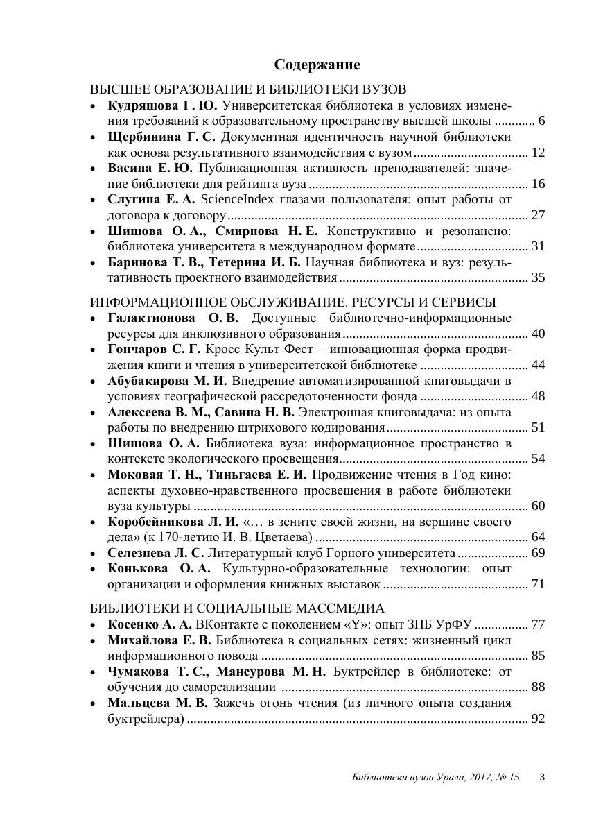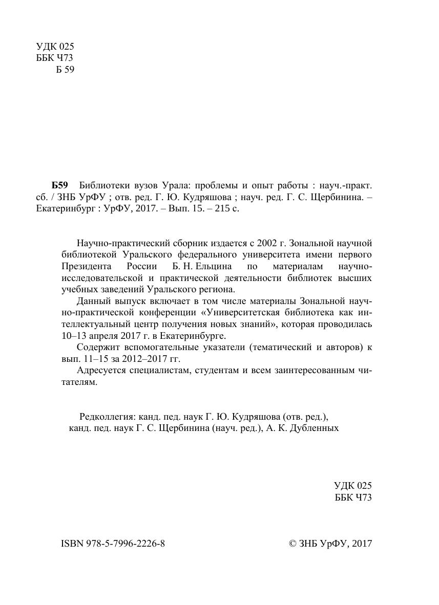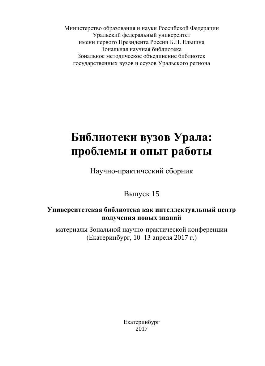 Библиотеки вузов Урала: проблемы и опыт работы: науч.-практ. сб. Выпуск 15