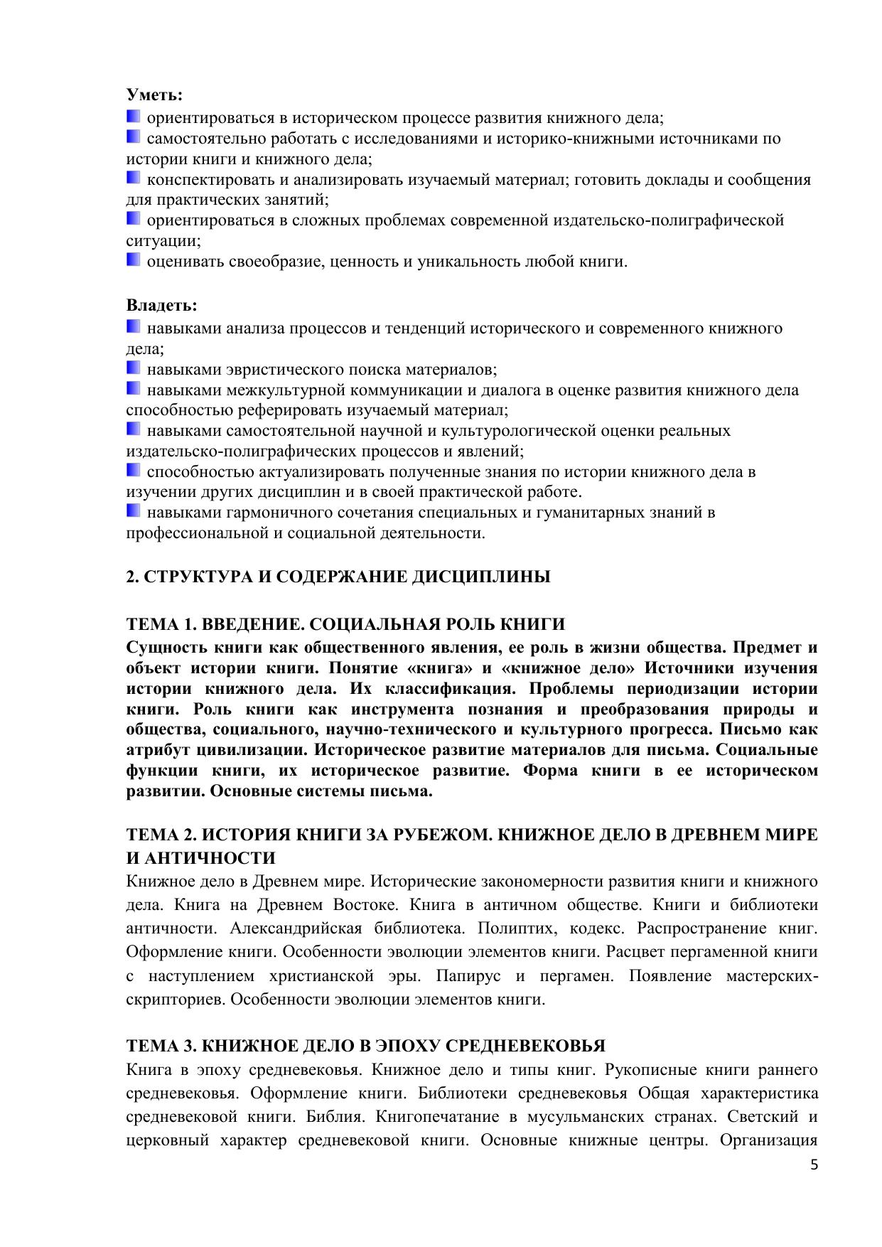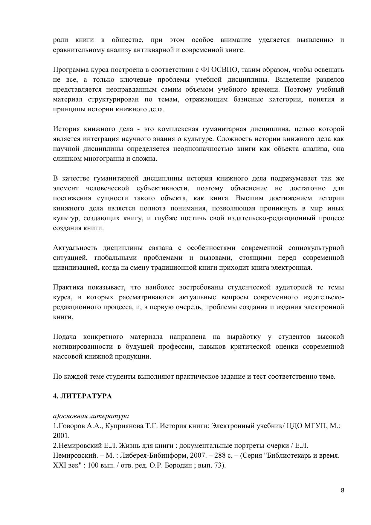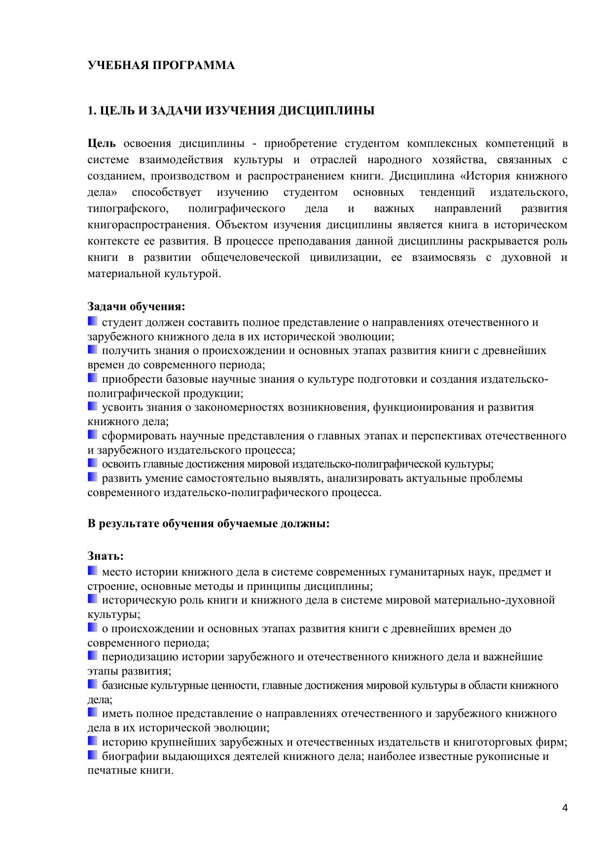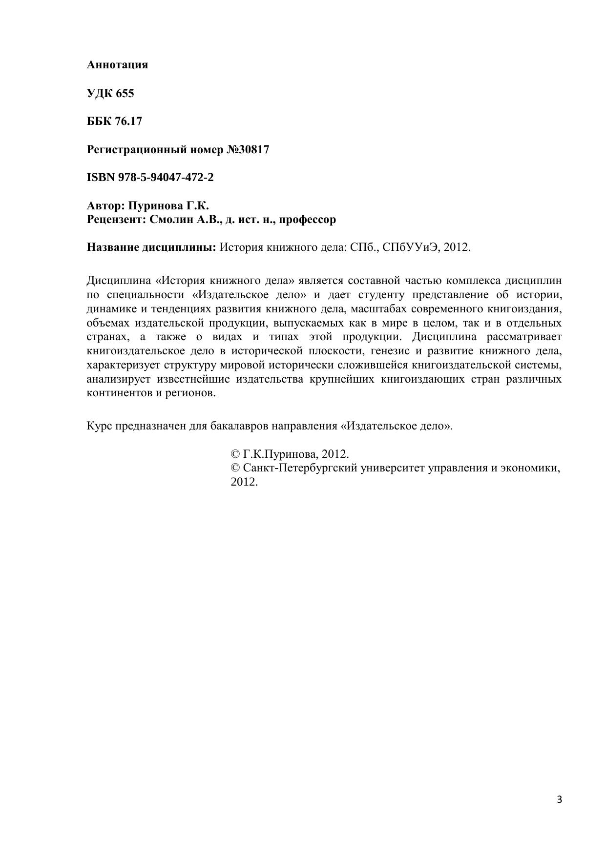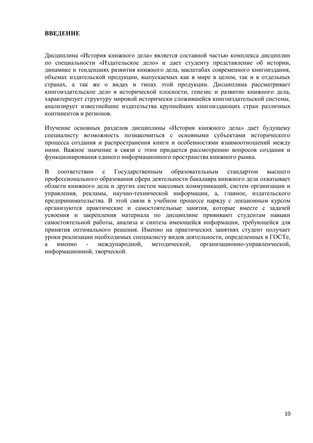 Дисциплина «История книжного дела» является составной частью комплекса дисциплин по специальности «Издательское дело» и дает студенту представление об истории, динамике и тенденциях развития книжного дела, масштабах современного книгоиздания, объемах издательской продукции, выпускаемых как в мире в целом, так и в отдельных странах, а также о видах и типах этой продукции. Дисциплина рассматривает книгоиздательское дело в исторической плоскости, генезис и развитие книжного дела, характеризует структуру мировой исторически сложившейся книгоиздательской системы, анализирует известнейшие издательства крупнейших книгоиздающих стран различных континентов и регионов. Курс предназначен для бакалавров направления «Издательское дело».