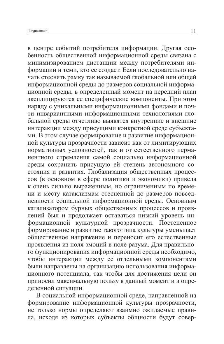 Анализируется влияние информационной среды на формирование культуры информационной прозрачности. Дается характеристика информационного общества и роли в нем информации, показаны различные аспекты доступа к ней. Рассматриваются сущность электронного правительства, предпосылки и концептуальные вопросы его создания. Особое внимание уделено библиотеке как части современной общественной инфраструктуры. Освещены проблемы информационной безопасности, доступности и надежности информации. Для ученых и специалистов в области библиотековедения и информационных технологий. Представляет интерес для широкого круга читателей.