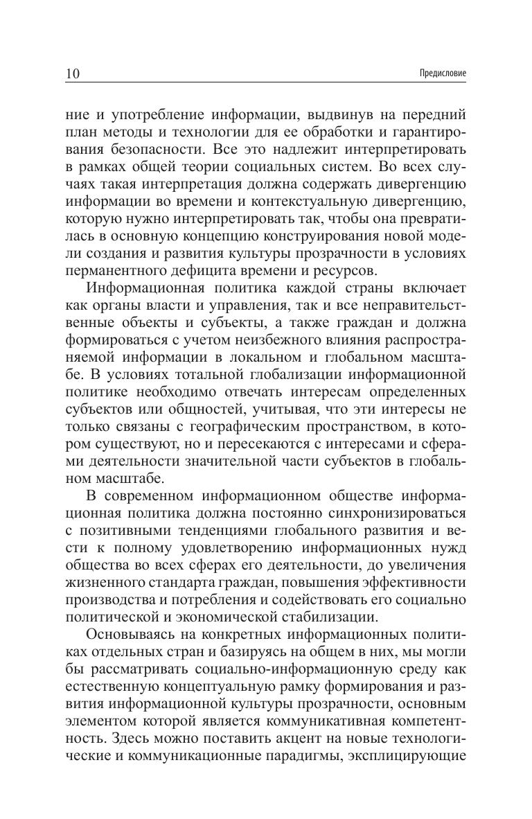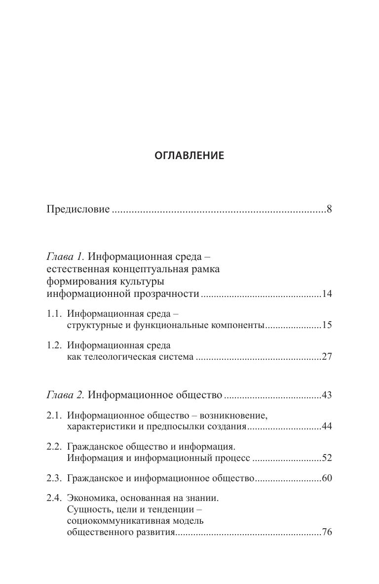 Анализируется влияние информационной среды на формирование культуры информационной прозрачности. Дается характеристика информационного общества и роли в нем информации, показаны различные аспекты доступа к ней. Рассматриваются сущность электронного правительства, предпосылки и концептуальные вопросы его создания. Особое внимание уделено библиотеке как части современной общественной инфраструктуры. Освещены проблемы информационной безопасности, доступности и надежности информации. Для ученых и специалистов в области библиотековедения и информационных технологий. Представляет интерес для широкого круга читателей.