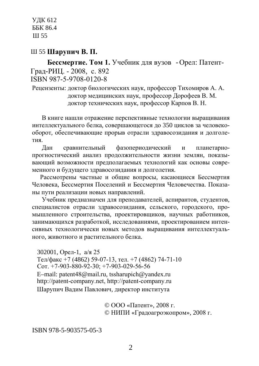 В книге нашли отражение перспективные технологии выращивания интеллектуального белка, совершающегося до 350 циклов за человеко-оборот, обеспечивающие прорыв отрасли здравосозидания и долголетия.