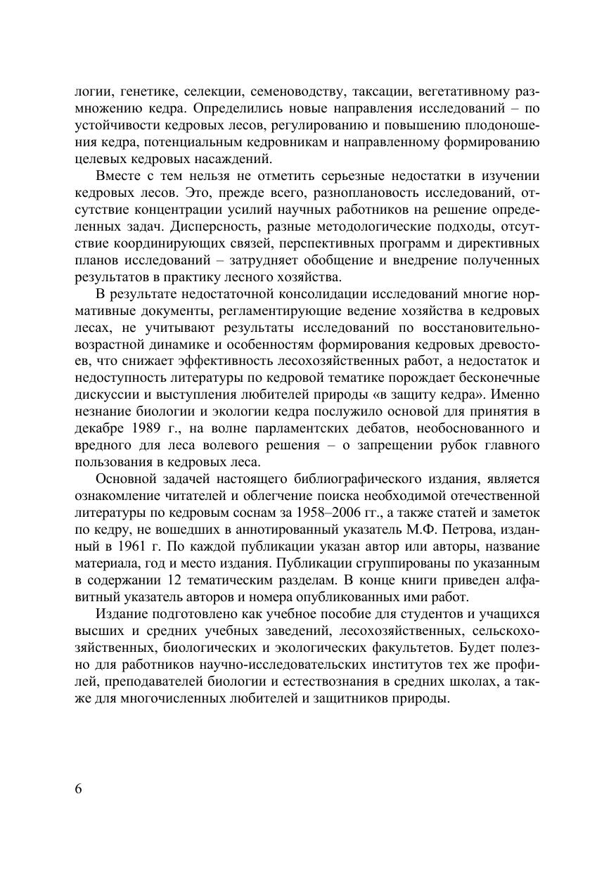 Указатель составлен в соответствии с учебным планом курса «Комплексное использование кедровых лесов» по специальности «Лесное и лесопарковое хозяйство». Содержит описание источников по биологии, экологии и типам кедровых лесов, вопросам генетики, селекции и семеноводства кедра, а так же возобновлению, искусственному востановлению, вредителям и болезням кедровых лесов. Второе издание дополнено списком диссертаций, защищенных по указанной тематике за 2006–2011 годы. Для лесоводов, экологов, ботаников, а также преподавателей, аспирантов и студентов биологического и сельскохозяйственного профилей