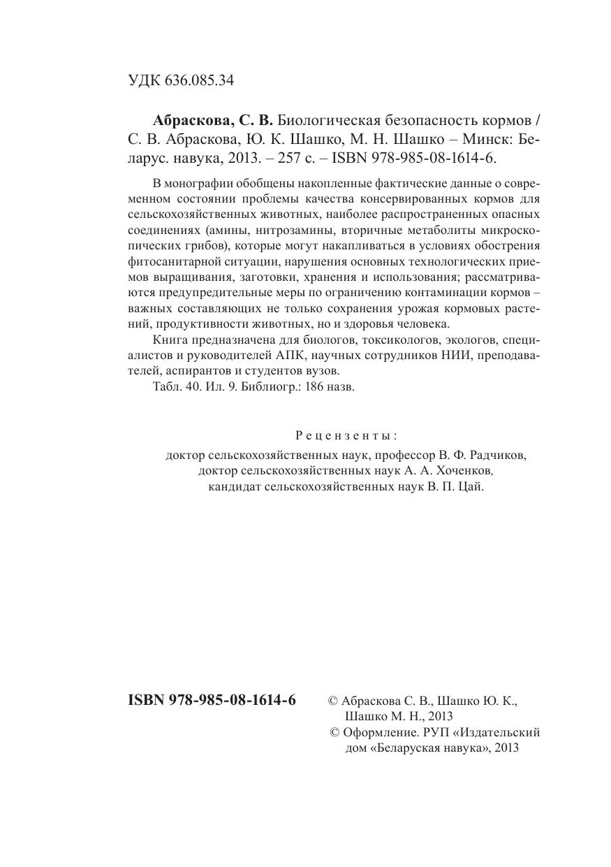 В монографии обобщены накопленные фактические данные о современном состоянии проблемы качества консервированных кормов для сельскохозяйственных животных, наиболее распространенных опасных соединениях (амины, нитрозамины, вторичные метаболиты микроскопических грибов), которые могут накапливаться в условиях обострения фитосанитарной ситуации, нарушения основных технологических приемов выращивания, заготовки, хранения и использования, рассматриваются предупредительные меры по ограничению контаминации кормов – важных составляющих не только сохранения урожая кормовых растений, продуктивности животных, но и здоровья человека. Книга предназначена для биологов, токсикологов, экологов, специалистов и руководителей АПК, научных сотрудников НИИ, преподавателей, аспирантов и студентов вузов.