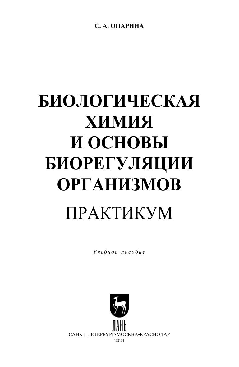 Биологическая химия и основы биорегуляции организмов. Практикум