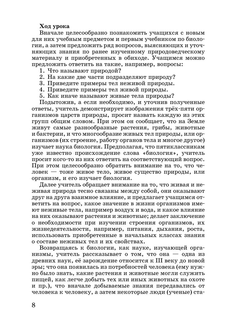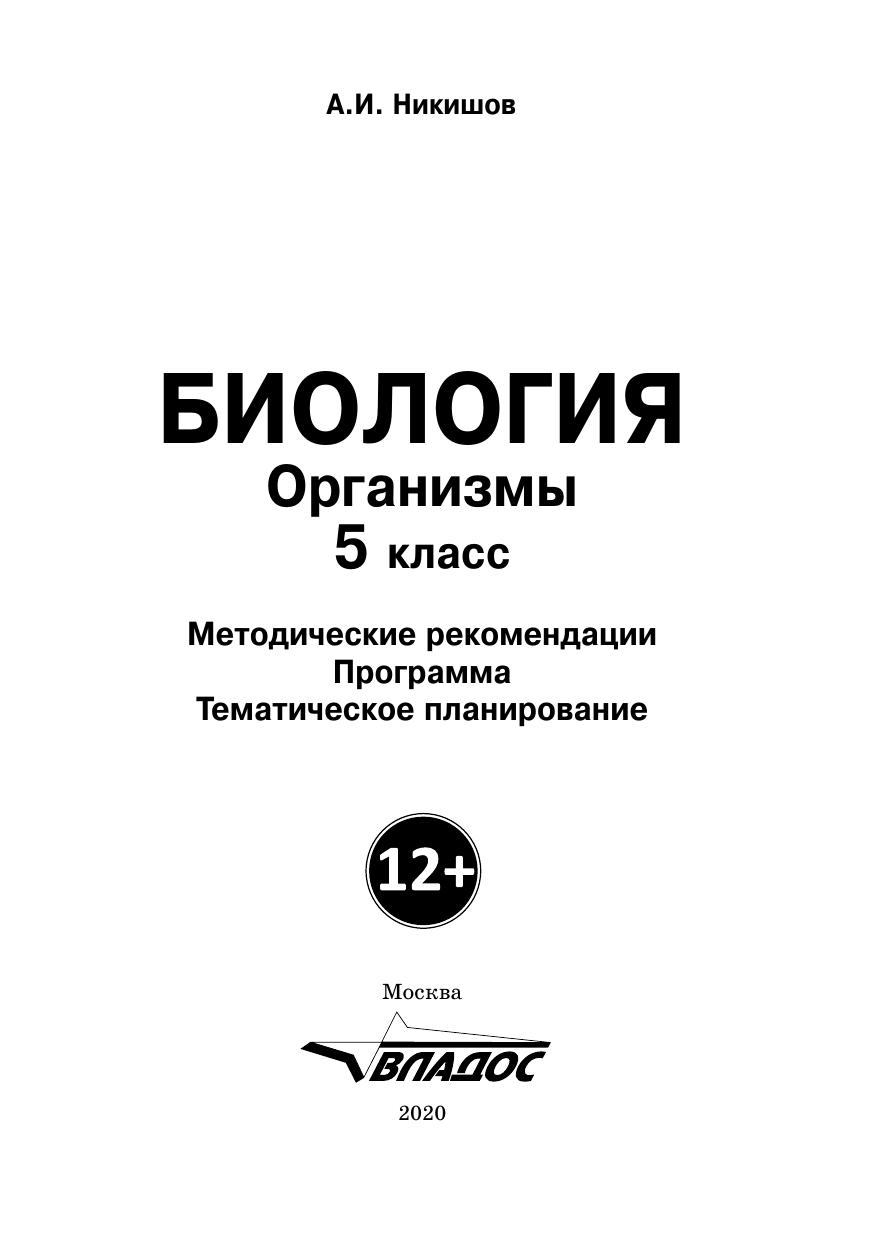 В пособии изложены вопросы организации учебно-воспитательного процесса в соответствии с требованиями ФГОС. Основу пособия составляют методические рекомендации проведения учебных занятий по биологии в соответствии с главами учебника А.И. Никишова «Биология. Организмы» для обучающихся 5 классов. Методическое пособие является составной частью УМК «Биология», включающего также соответствующий учебник и электронную форму учебника (ЭФУ). В пособие включены также программа по биологии и тематическое планирование проведения уроков. Пособие можно использовать при подготовке учителей и студентов к проведению уроков биологии, на занятиях в системе дополнительного профессионального образования, на курсах повышения квалификации педагогических кадров.