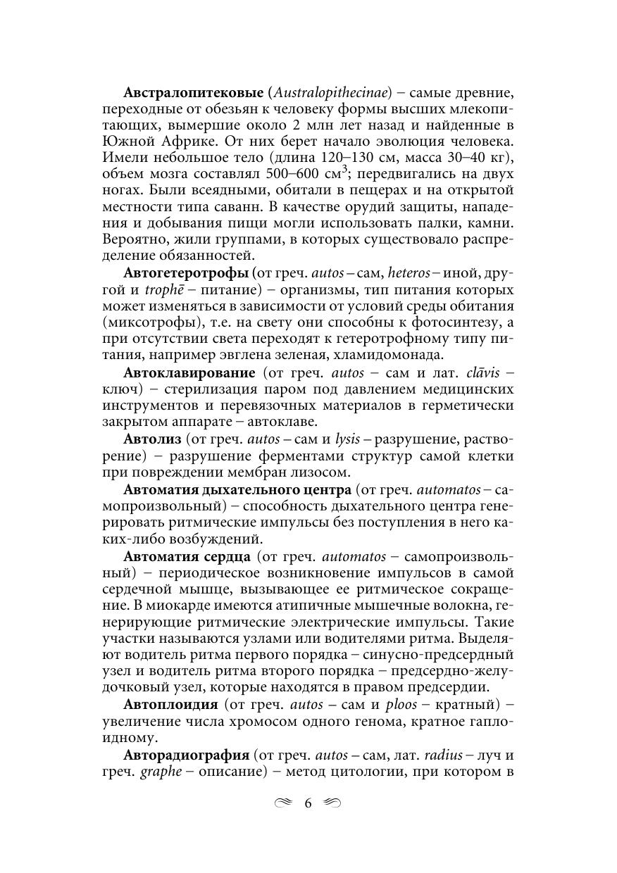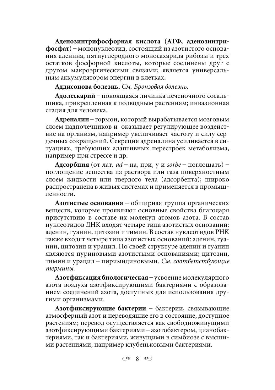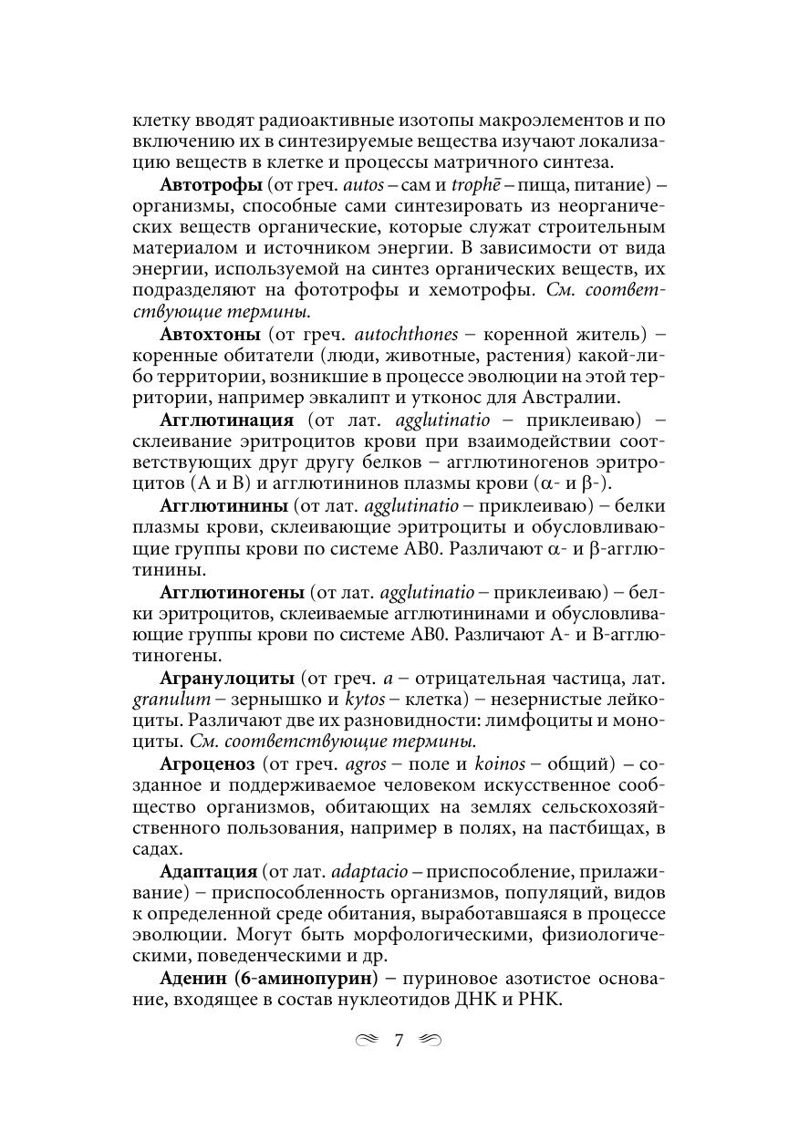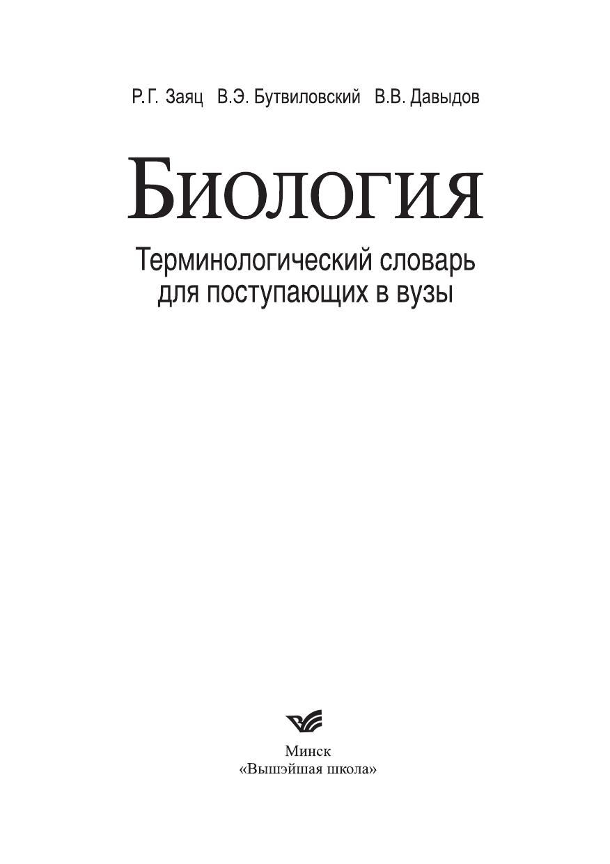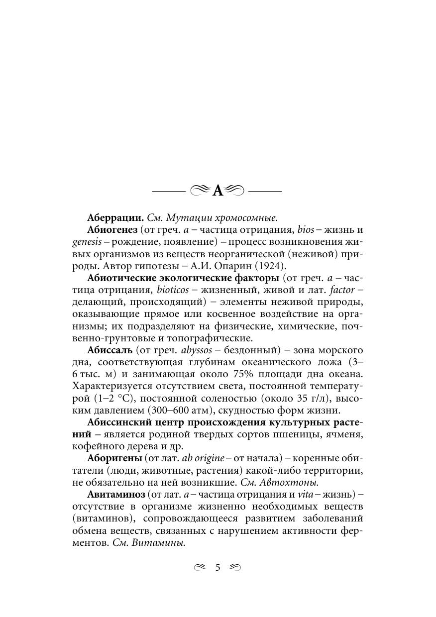 Содержит более 2400 терминов и понятий по всему школьному курсу биологии. Четко, доступно и кратко объясняются термины, которые встречаются в школьных учебниках и входят в задания централизованного тестирования. Для абитуриентов вузов и ССУЗов. Будет полезен слушателям подготовительных курсов вузов, учащимся школ, а также студентам.