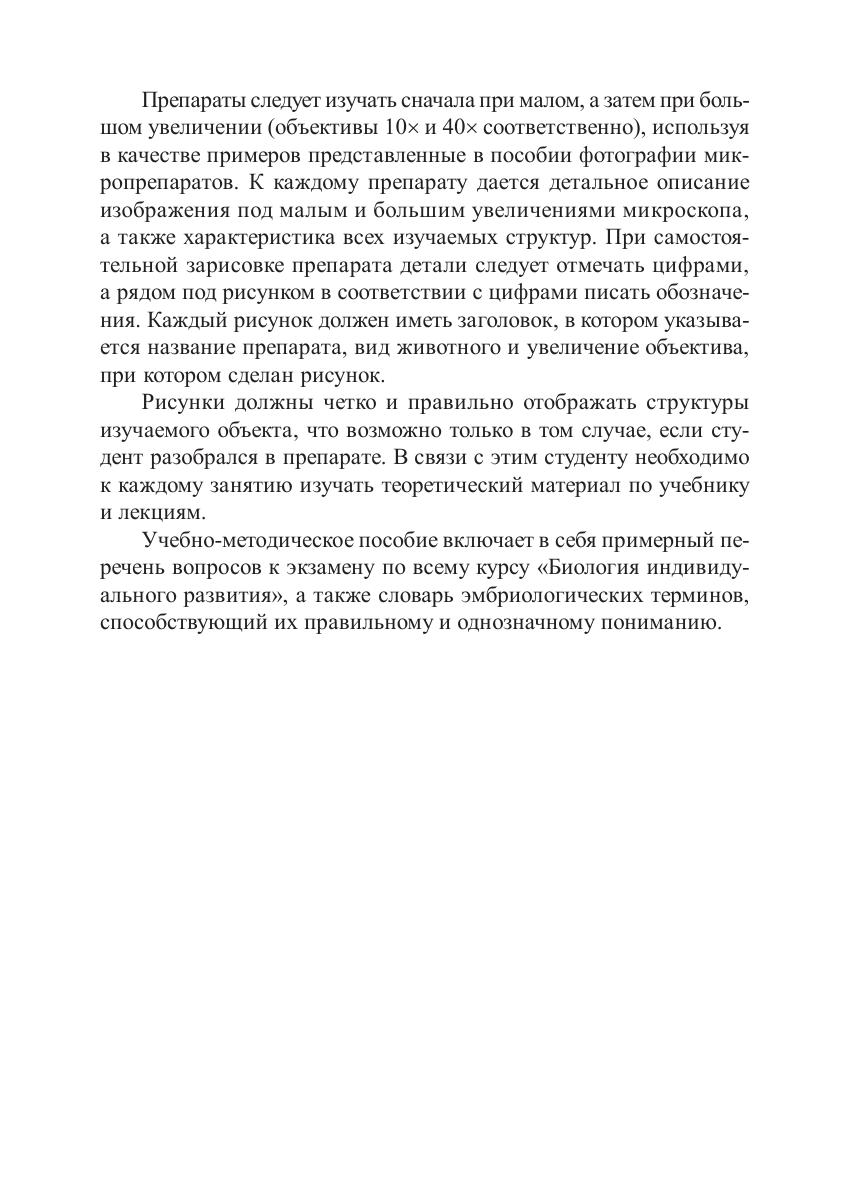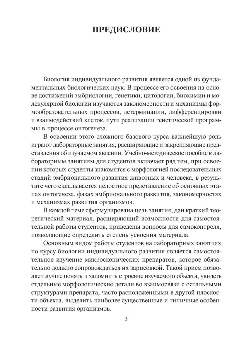 Учебно-методическое пособие знакомит студентов с последовательными морфологическими изменениями организма зародыша на ранних этапах онтогенеза. Представлен теоретический материал, посвященный эмбриональному развитию человека и животных, дано описание особенностей микропрепаратов. Лабораторные работы дополнены фотографиями эмбриологического материала, вопросами для самоконтроля. В пособие включен словарь эмбриологических терминов. Для студентов, обучающихся по направлениям подготовки бакалавриата «Биология», «Экология и природопользование».
