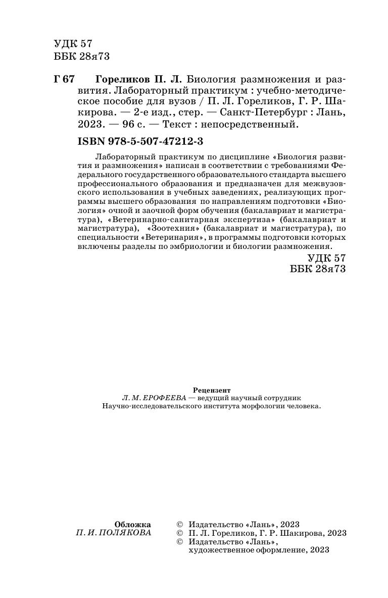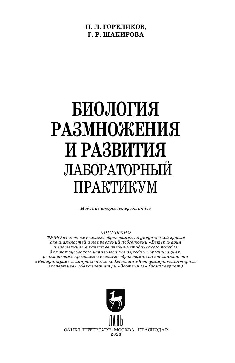 Лабораторный практикум по дисциплине «Биология развития и размножения» написан в соответствии с требованиями Федерального государственного образовательного стандарта высшего профессионапьного образования и предназначен для межвузовского использования в учебных заведениях, реализующих программы высшего образования по направлениям подготовки «Биология» очной и заочной форм обучения (бакалавриат и магистратура), «Ветеринарно-санитарная экспертиза» бакалавриат и магистратура), «Зоотехния» (бакалавриат и магистратура), по специальности «Ветеринария», в программах подготовки которых включены разделы по эмбриологии и биологии размножения.