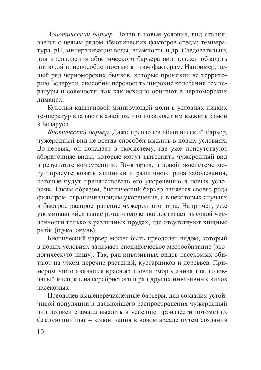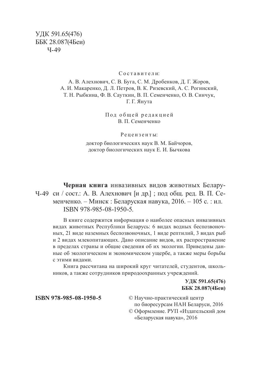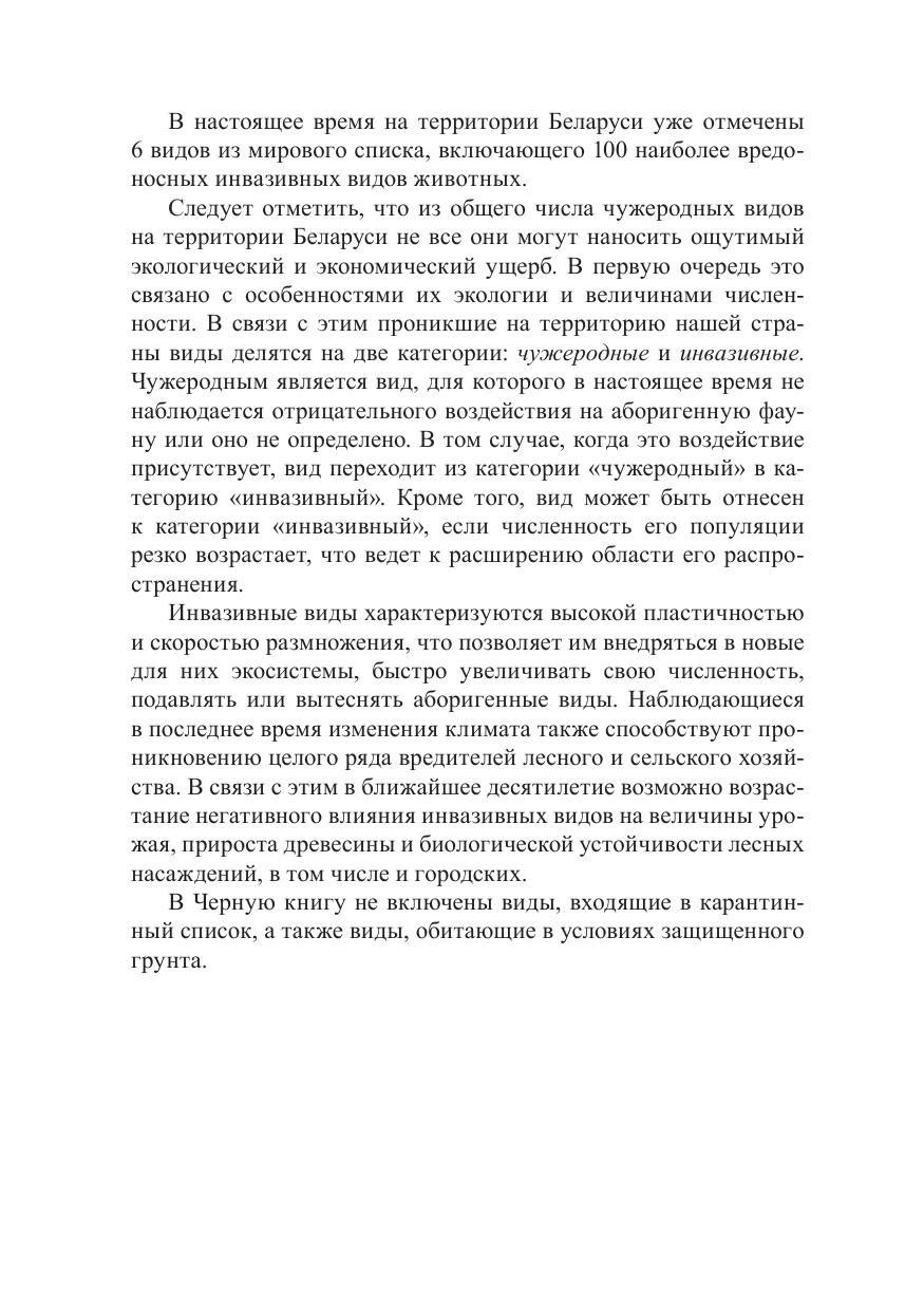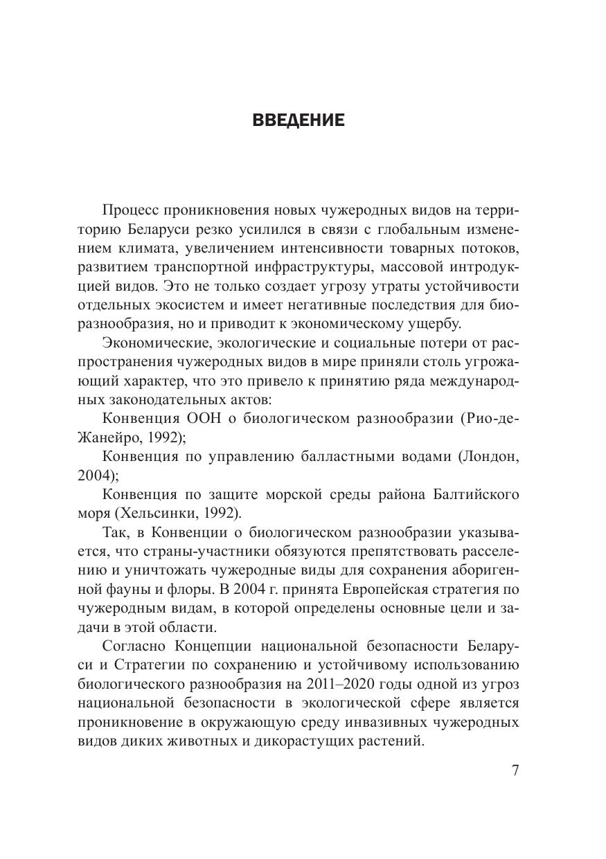 В книге содержится информация о наиболее опасных инвазивных видах животных Республики Беларусь: 6 видах водных беспозвоночных, 21 виде наземных беспозвоночных, 1 виде рептилий, 3 видах рыб и 2 видах млекопитающих. Дано описание видов, их распространение в пределах страны и общие сведения об их экологии. Приведены данные об экологическом и экономическом ущербе, а также меры борьбы с этими видами. Книга рассчитана на широкий круг читателей, студентов, школьников, а также сотрудников природоохранных учреждений.